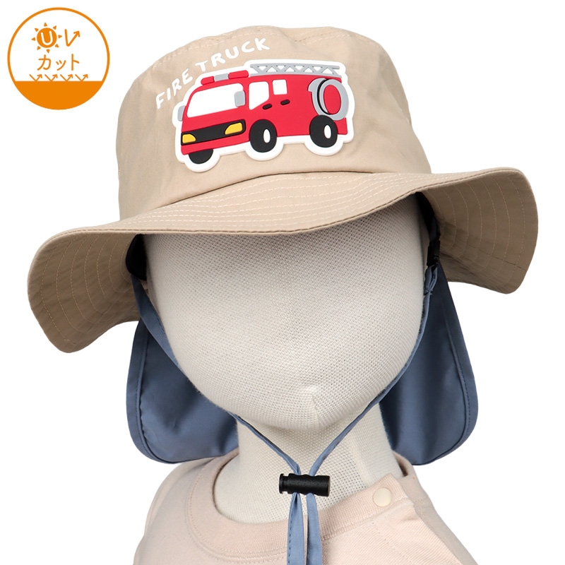 [48~54cm]サファリハット ラバーワッペン 日よけ付き ベージュ