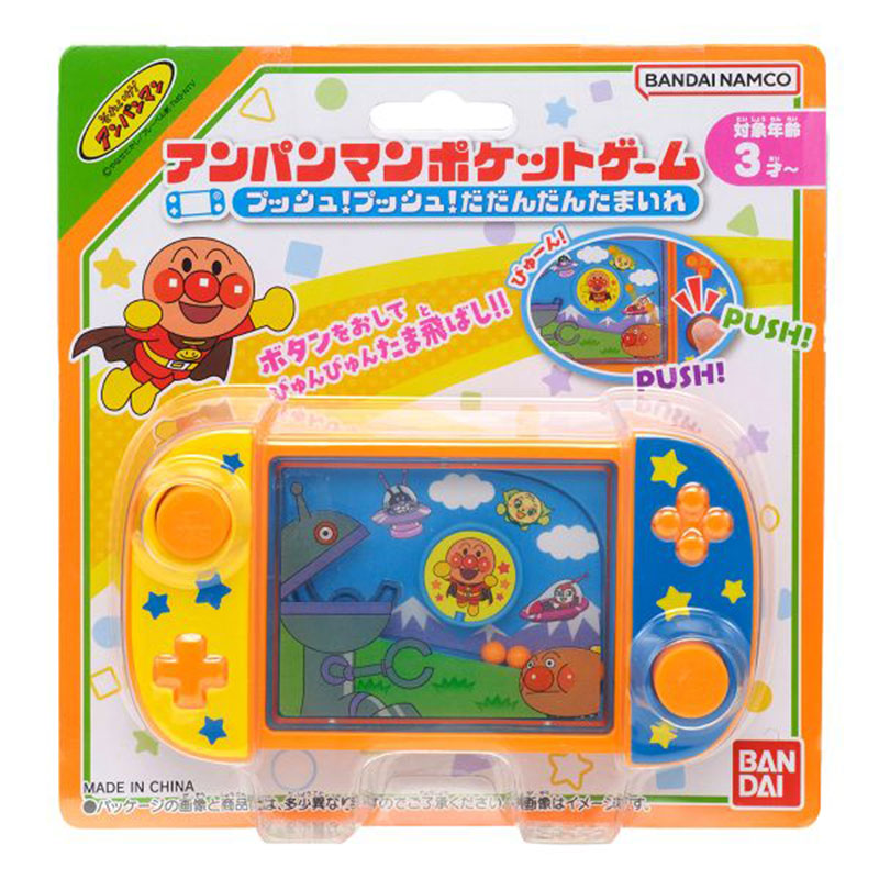 何度も遊びたくなる、コンパクトなアナログゲームです。 電池不要のため、お家の中でも外でも、好きな時に遊ぶことができます。 右ボタンで玉を飛ばし、だだんだんに入れてみよう。 左のリリースボタンを押すと、アンパンマンの回転盤もくるくる回るよ。