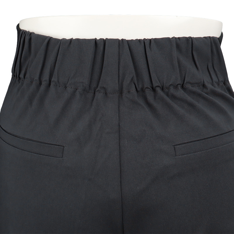 ウエスト部分リブジャージで伸びるデザインでお腹をhugするような切替にしています。おしり部分にゆとりをもたせたテーパードタイプのパンツです。動きやすく、肌当たりのよい素材を使用しています。少し落ち感がありますので、オフィスでもお勧めです。
