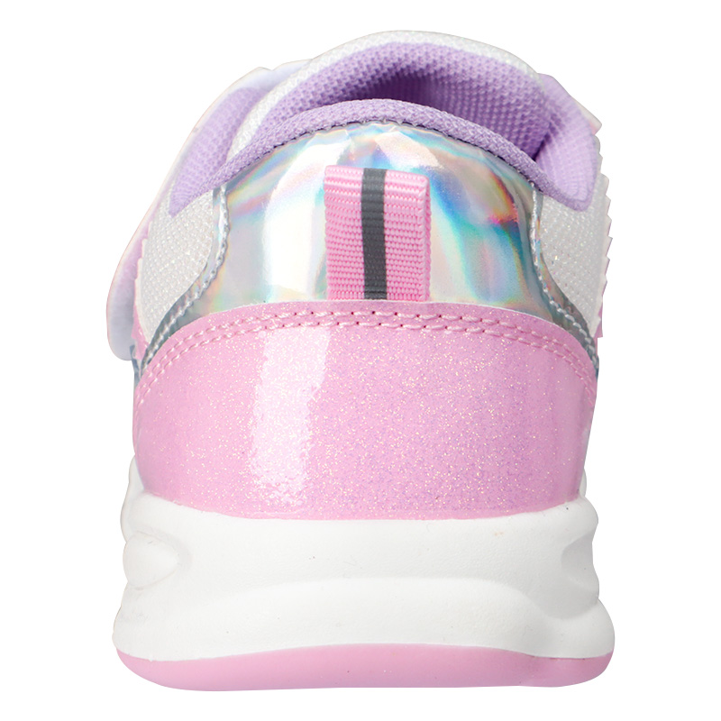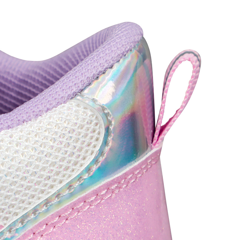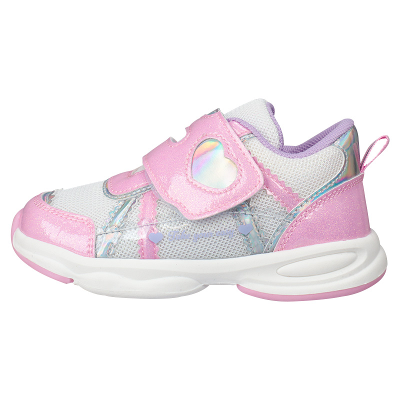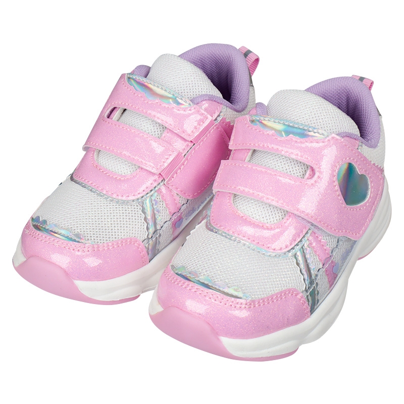 キラキラした配色が特徴。お出かけが楽しくなると思います。 通気性の良いメッシュ素材でムレにくく、通園や公園遊び、お出かけなど色々な場面に活躍できる1足です。 履き口が大きく開くワンベルトで、脱ぎ履きしやすいのもポイントです。