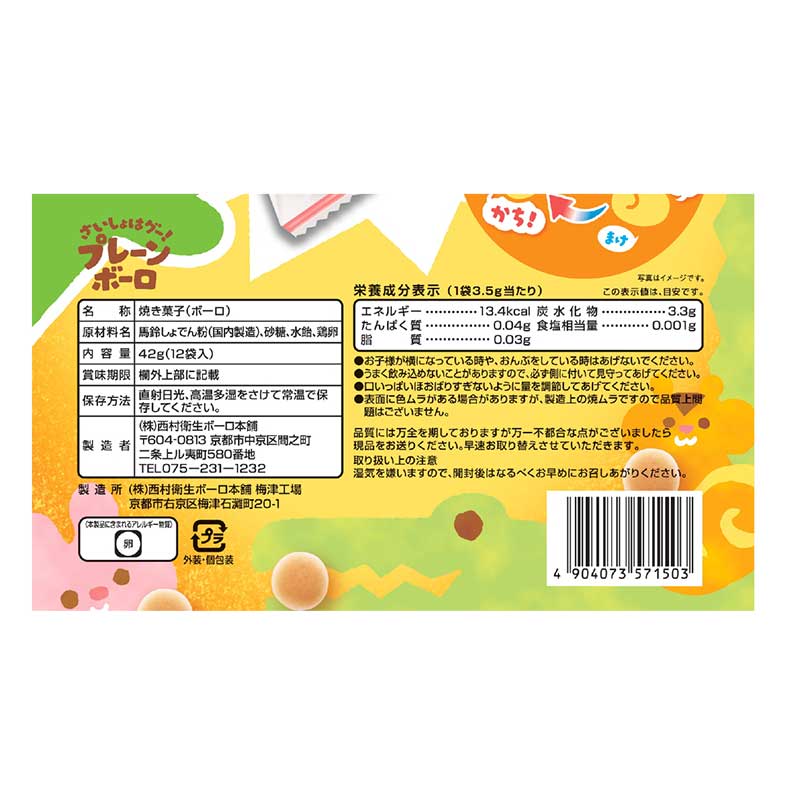 主原料は国産のじゃがいもでん粉を使用し、シンプルな原材料で製造した昔ながらのくちどけの良い懐かしいボーロです。 デザインはじゃんけんをイメージしたもので、遊べるタイプのテトラパックのタイプのボーロです。