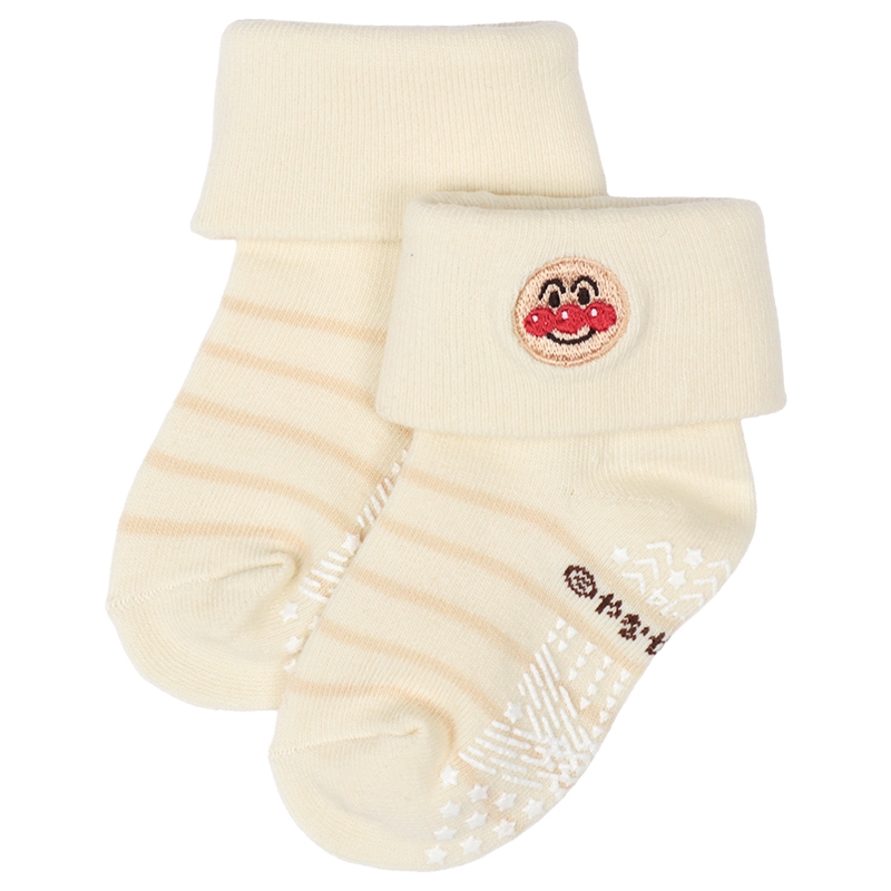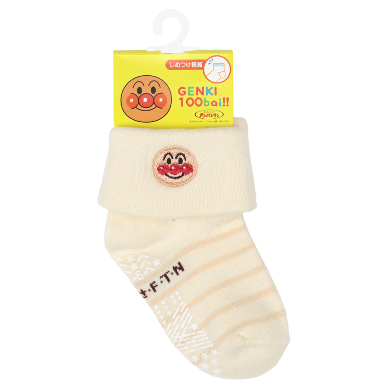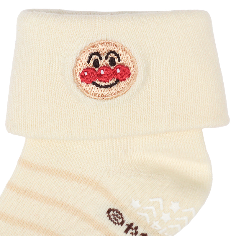 可愛いアンパンマンのワンポイントを刺繍で表現した 折り返しベビーソックスです どんな服装でも合うベビーソックスです