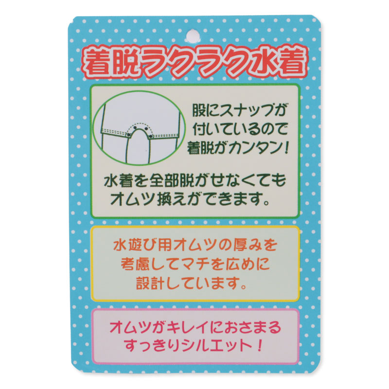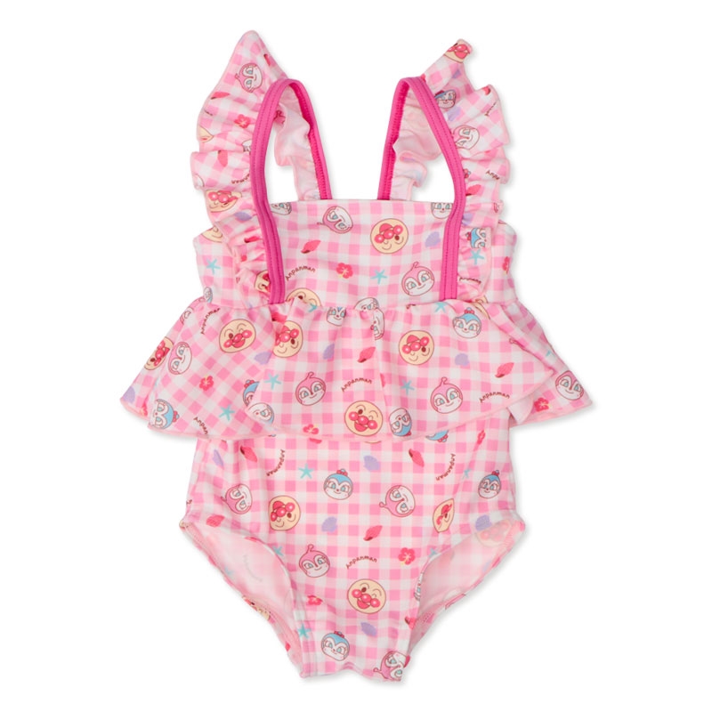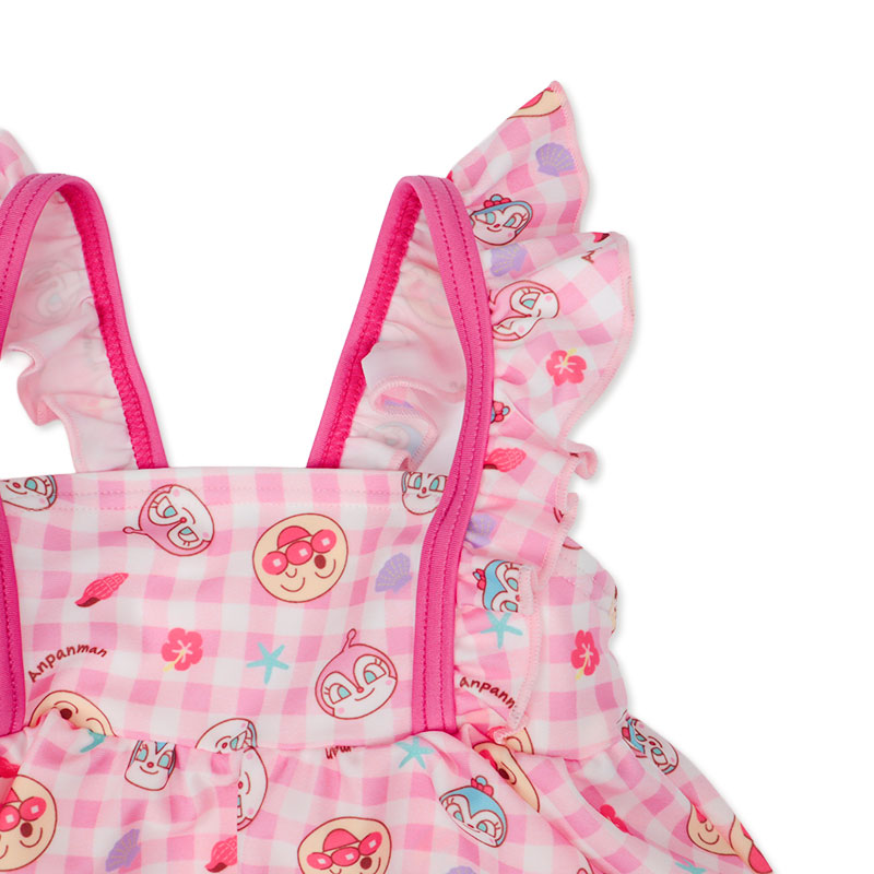 ●素材:[本体]ポリエステル85% ポリウレタン15% [裏側生地]ポリエステル100% ●サイズ(約・cm): [100]前中心丈34.5 身巾25 肩紐29.2 衿ぐり26.5 背ぐり25 足ぐり33 ●洗濯表示:洗濯可 (C)やなせたかし/フレーベル館・TMS・NTV