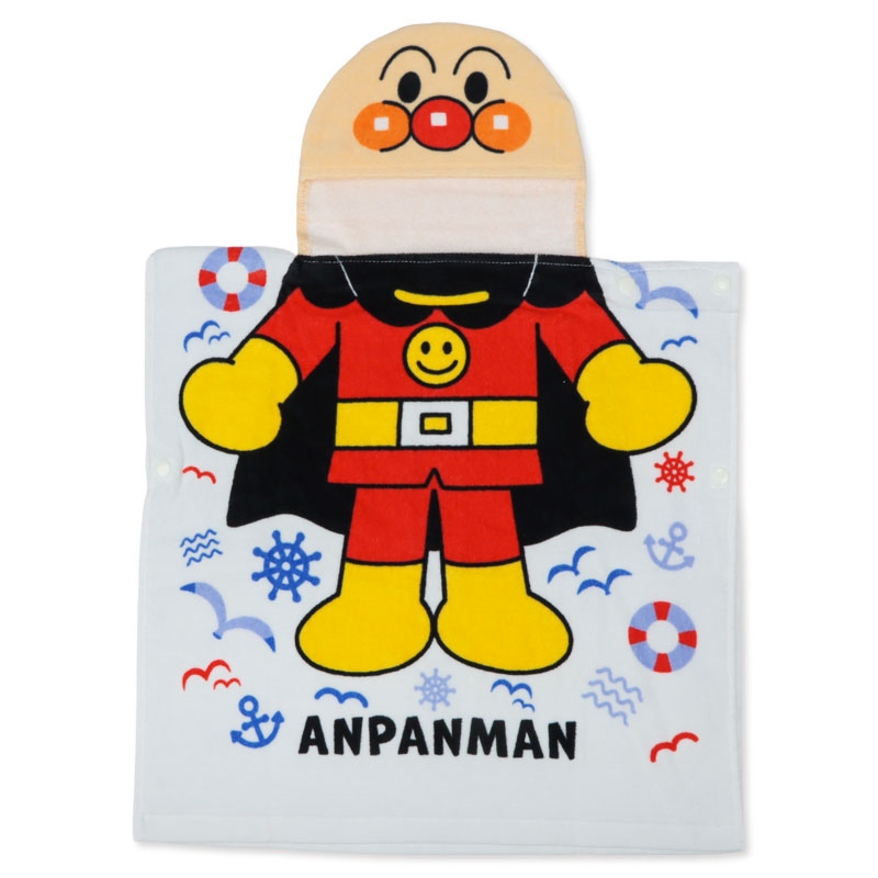 お子様に人気のアンパンマンキャラクターのタオルポンチョです。 フード部分がキャラクターの顔になっていて、胴体部分にもキャラクターの身体がデザインされているので、アンパンマンキャラクターになりきれます。 水遊びが終わった後も、アンパンマンキャラクターに包まれて楽しく過ごしましょう。