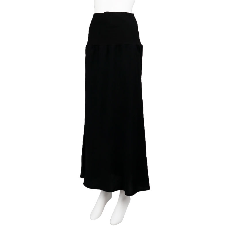軽く、表面感がある素材を使用したフレアスカートです。 ベーシックなデザインなのでどんな上衣とも合わせやすいです。 ウエスト部分を折り返しても着用いただけますので 妊娠初期のおなかのあまり出ていない時期や産後にも活躍できる商品です。