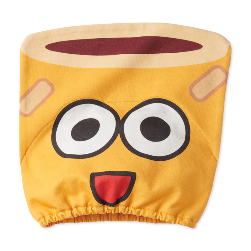 ●商品サイズ: [ベスト](80~90cm)身丈39・身巾32・裄丈19.5・袖口巾10.5・裾巾32 [帽子](50~52cm)身丈16.5・身巾26・帽子口ゴム上がり21 ●素材:[本体・帽子]綿100% ●洗濯表示: ・洗濯可(40℃/弱く) ・漂白剤使用禁止 ・タンブル乾燥禁止 ・日陰で吊り干 ・アイロン仕上げ禁止 ・ドライクリーニング禁止 (C)LOTTE/HAKUHODO