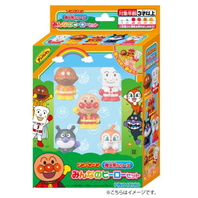 アンパンマンの人気の仲間たち5体の指人形セットです。 立たせやすいポーズだから遊びやすい。 変形しにくいしっかりとした形状、 かわいいポーズでごっこ遊びに最適です。