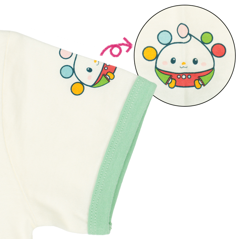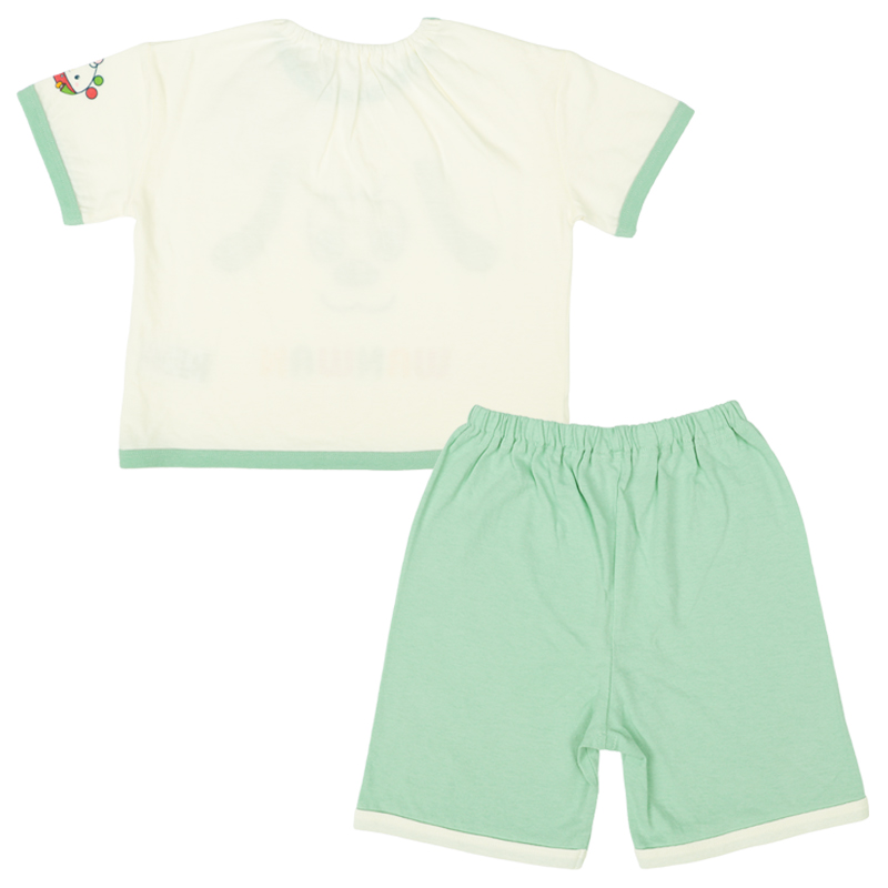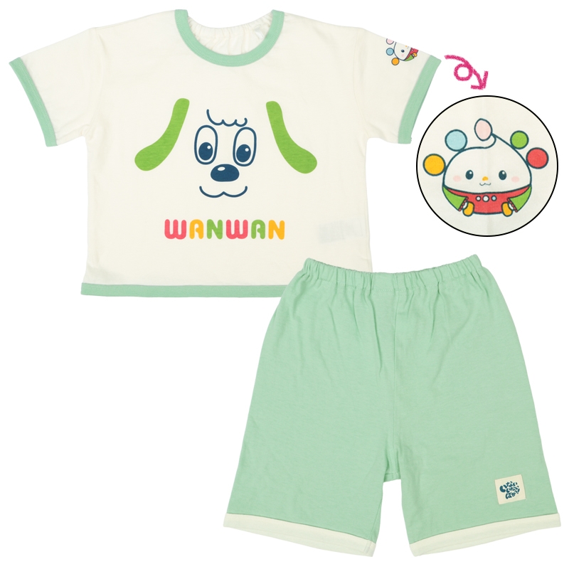 ●素材= 本体 綿100% リブ部分 綿95% ポリウレタン5% ●サイズ(約・cm)= 80(身丈34・身幅35・袖丈10.5・裾幅35・股上21.5・股下7) 90(身丈36・身幅36・袖丈11・裾幅36・股上22・股下9) 95(身丈38・身幅37・袖丈11.5・裾幅37・股上22.5・股下11) 100(身丈40・身幅38・袖丈12・裾幅38・股上23・股下13)