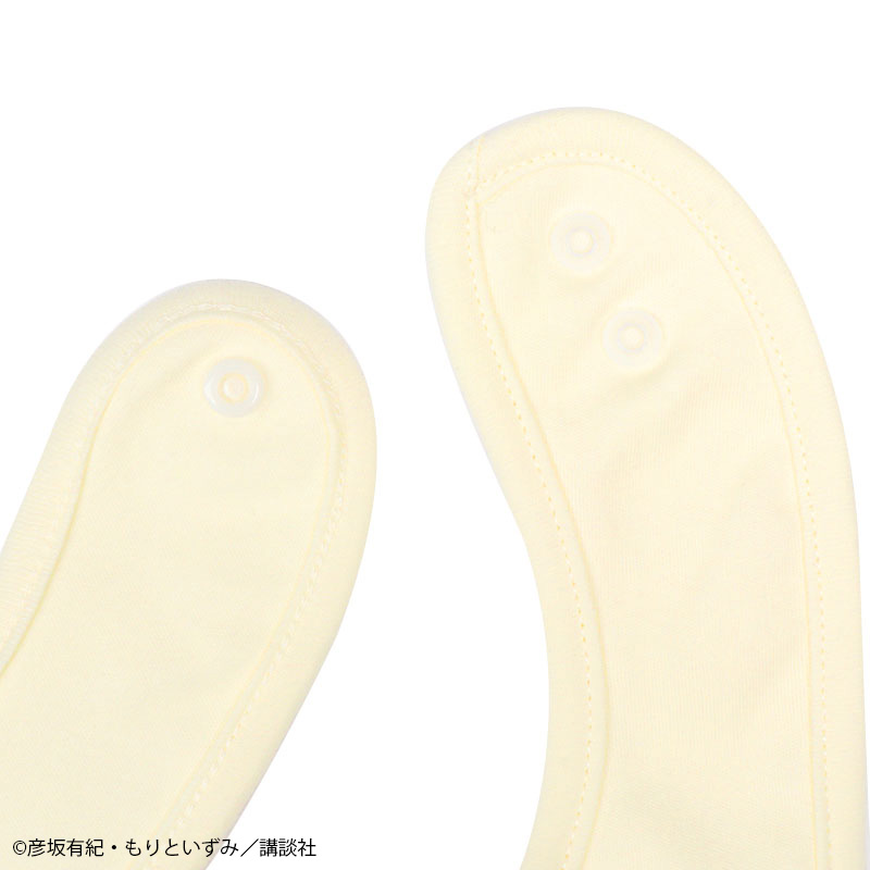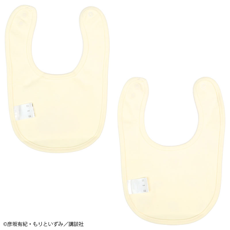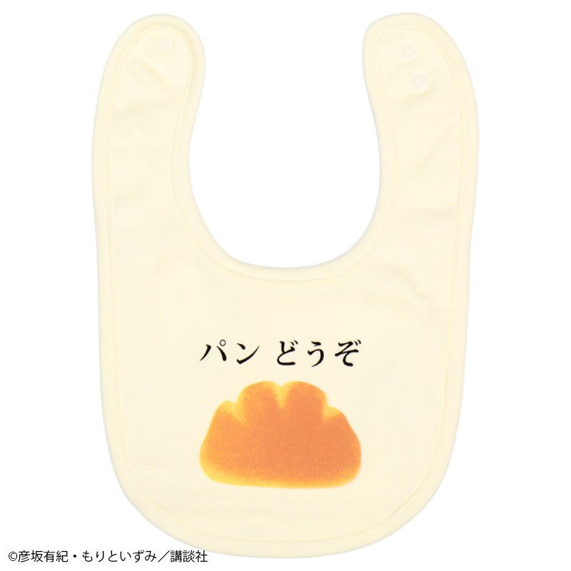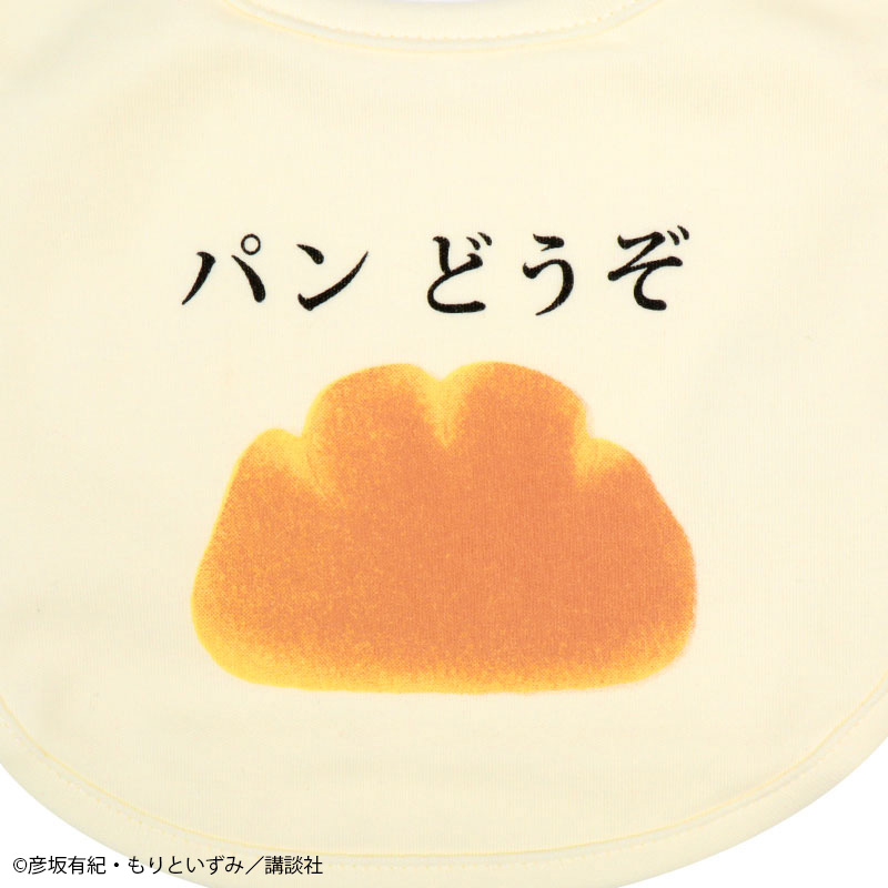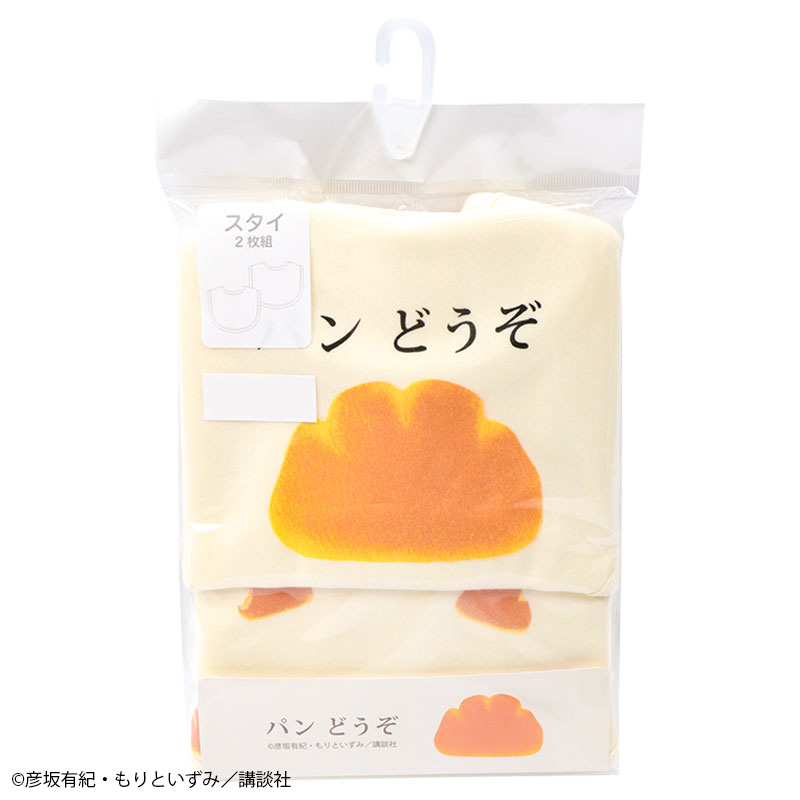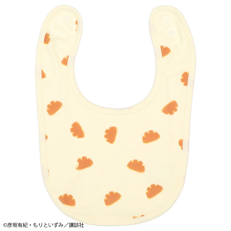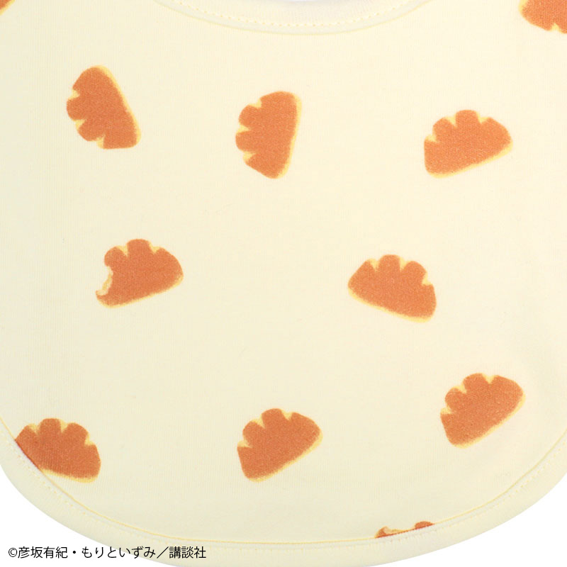 絵本「パンどうぞ」のスタイです。 クリームパンのワンポイントと総柄との2枚組みです。 素材は綿100%のスムース素材、表面がなめらかでやわらかい肌触り。 スナップボタンの合わせを変えることで、首回りのサイズ調整ができます。