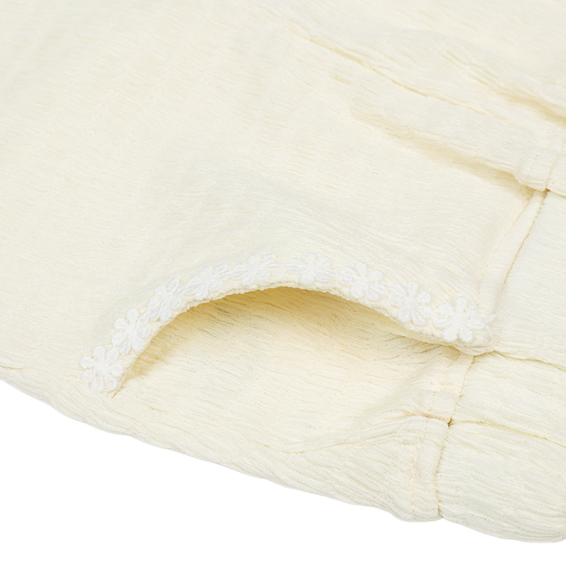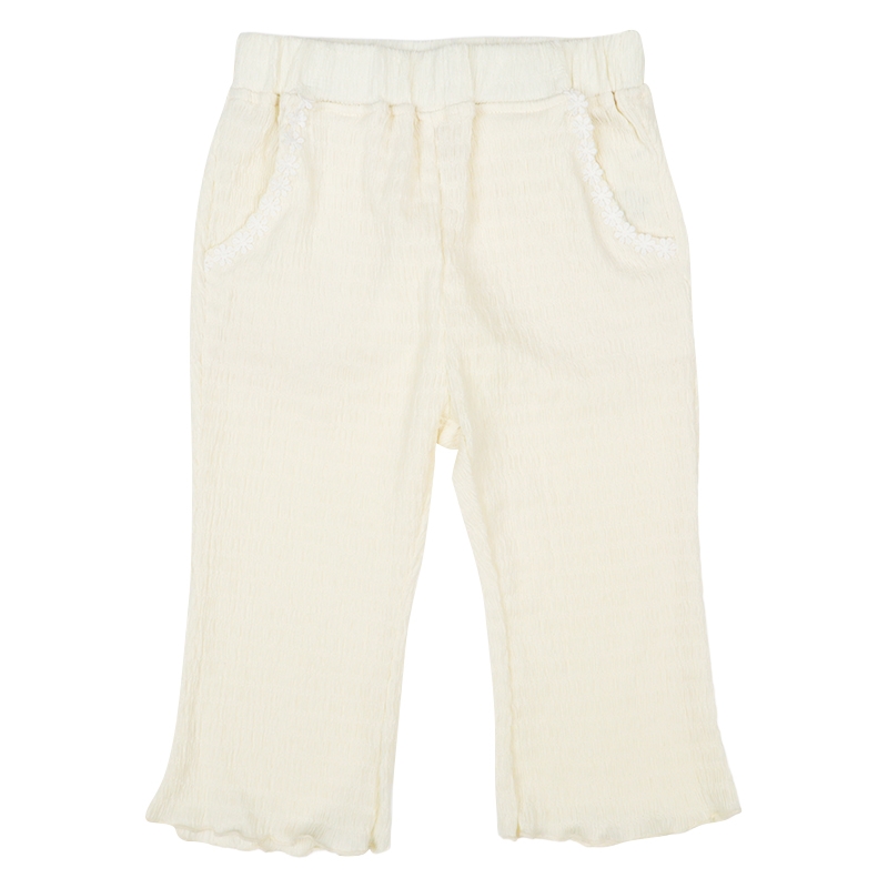 着用期間が長い、便利な7分丈パンツ。 素材感のあるパンツです。凹凸感がある乾きやすい素材で、肌に貼りつくことなく、軽いはき心地です。 程よいストレートシルエットも、ポイントです。 ベーシックな色で、コーディネートの巾が広がります。 名前が書けるお名前タグ付きです。