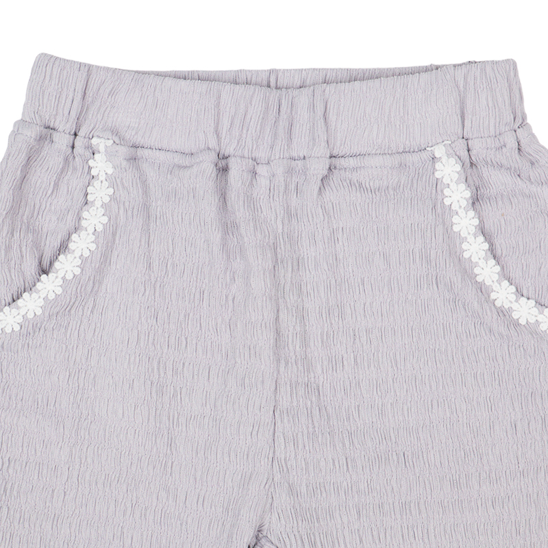 [キッズ]7分丈パンツ 花モチーフ ジャガード グレー
