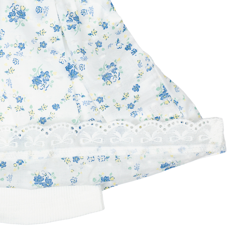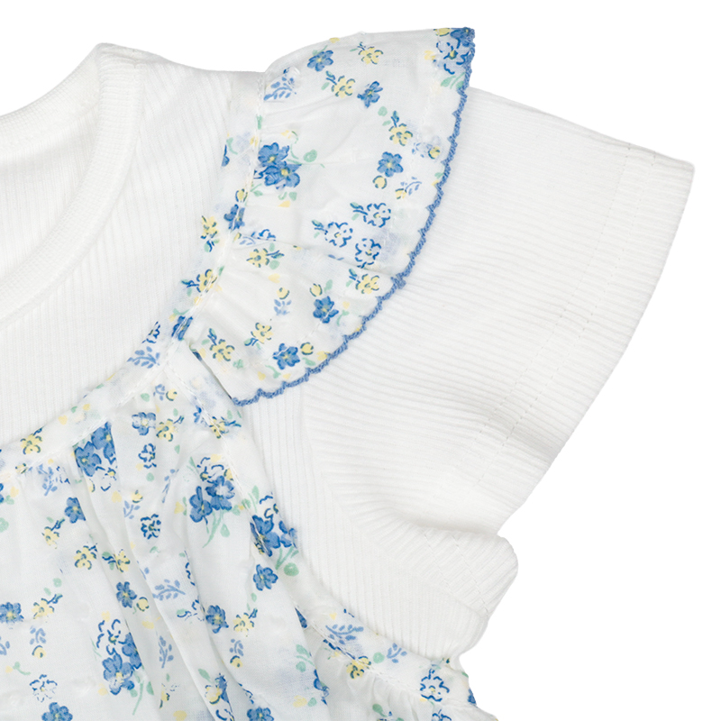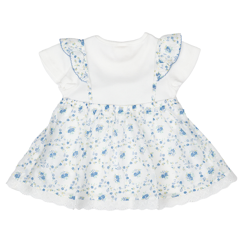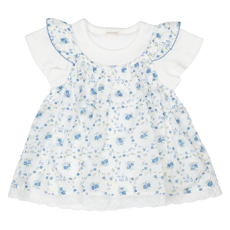 ●素材=Tシャツ部 綿60% ポリエステル40%/衿刳り部 綿57% ポリエステル40% ポリウレタン3%/スカート部 綿100% ●サイズ(約・cm)= 100(着丈39 身巾29 袖丈9 裾巾61) 110(着丈42 身巾31 袖丈10 裾巾65) 120(着丈45 身巾33 袖丈11 裾巾70)