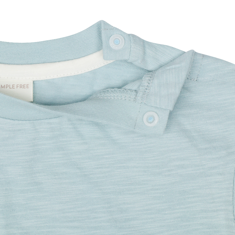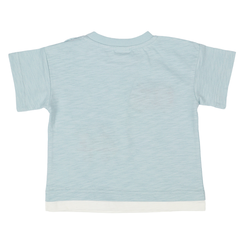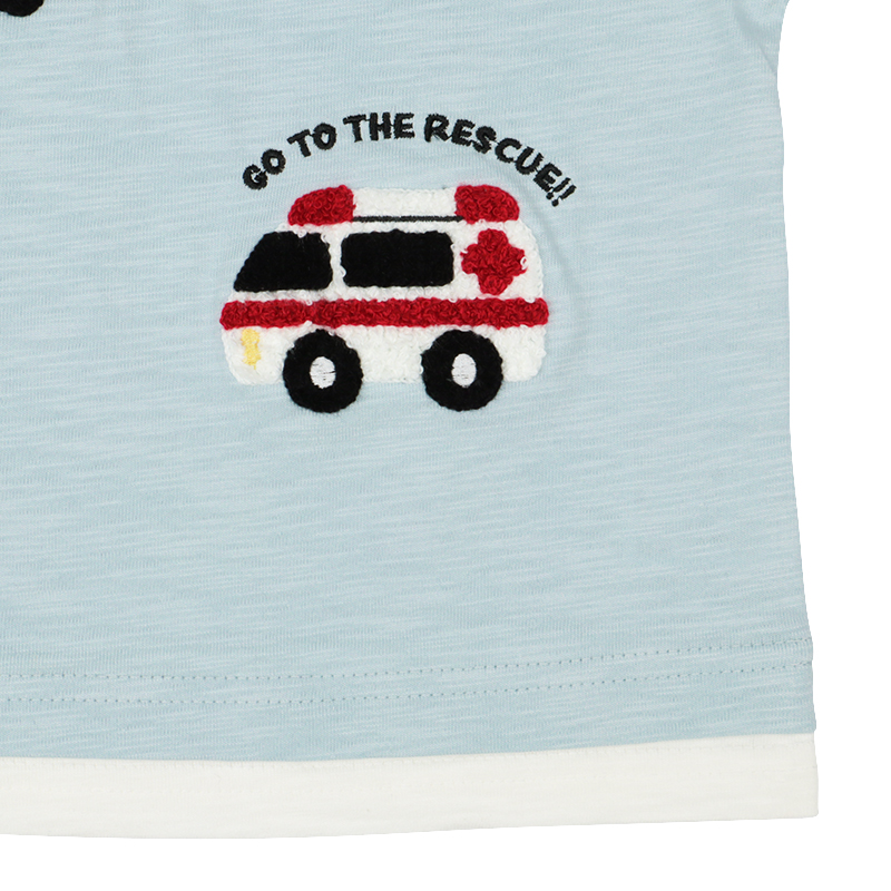 ●素材=本体 綿100%/衿刳り部綿95% ポリウレタン5% ●サイズ(約・cm)= 80(着丈32 身巾31 袖丈7 裾巾31) 90(着丈34 身巾32 袖丈8 裾巾32) 95(着丈36 身巾33 袖丈9 裾巾33)