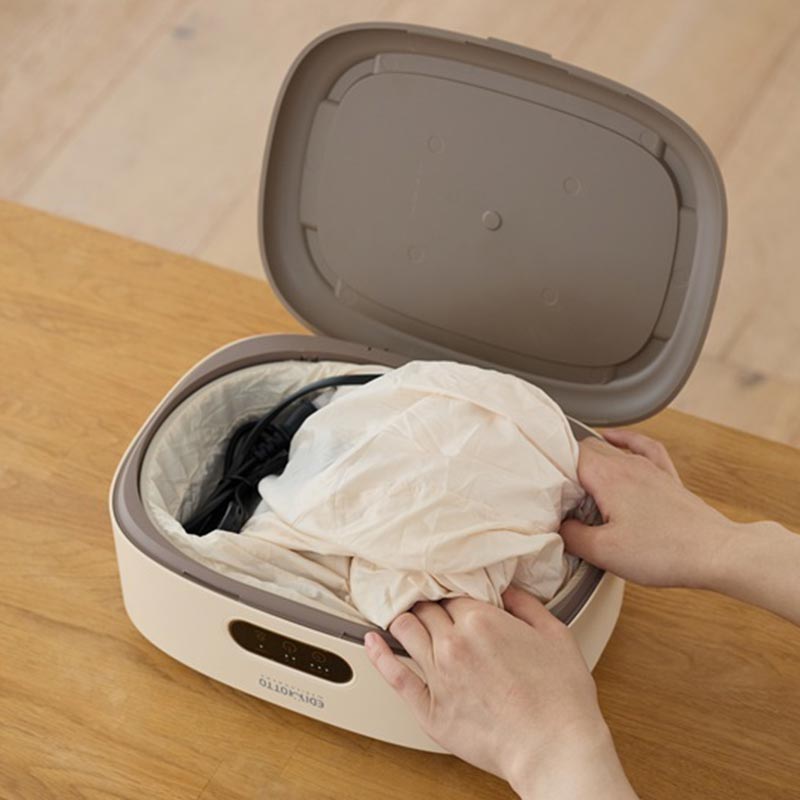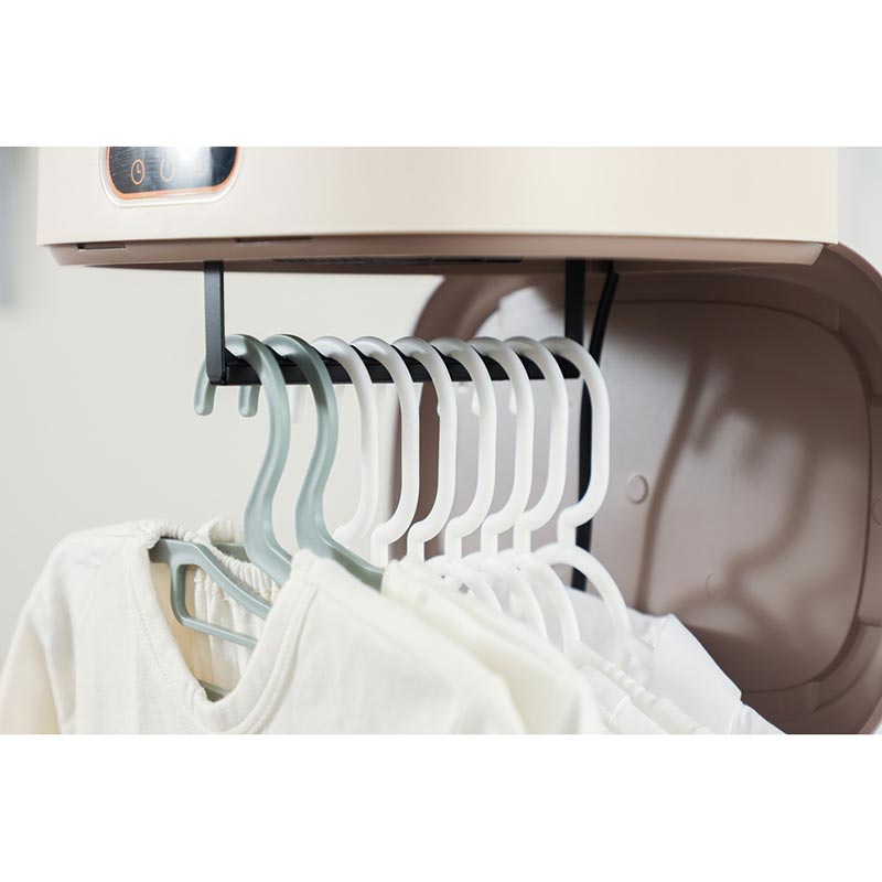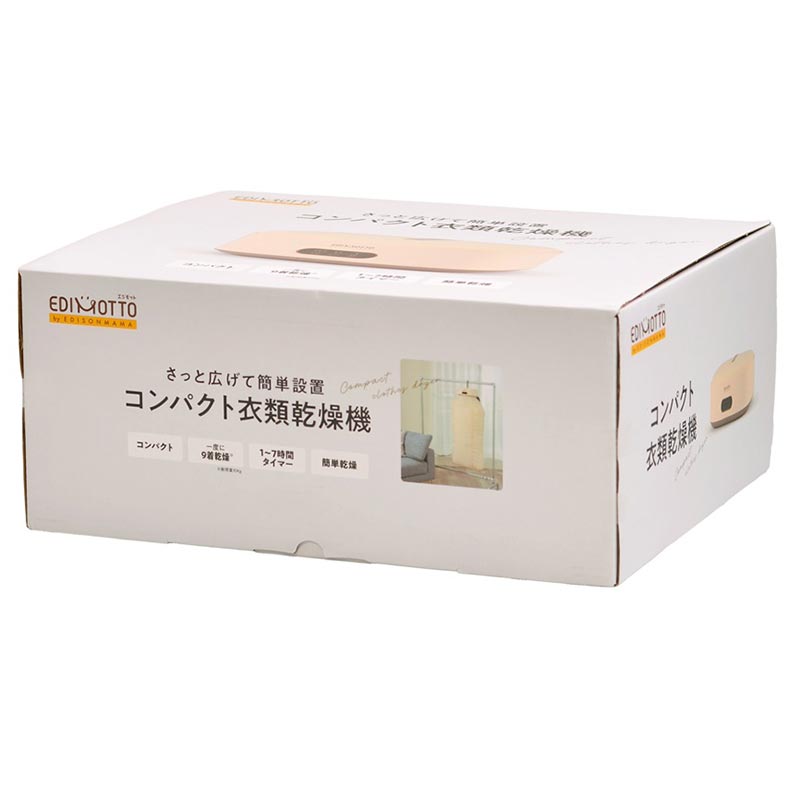 さっと広げて使えるコンパクトな衣類乾燥機 ●保育園用に洗い替えのエプロン・タオル等を少量乾燥に。 ●急な雨などで濡れてしまった衣類を乾燥させたい等。 ●コンパクト設計で収納にも便利。 ●一度に9着(耐荷重10㎏まで)乾燥。 ●1~7時間タイマー付(最大8時間) ●Low(60℃)/High(70℃)モード付