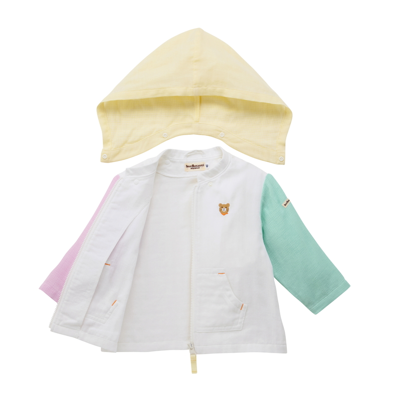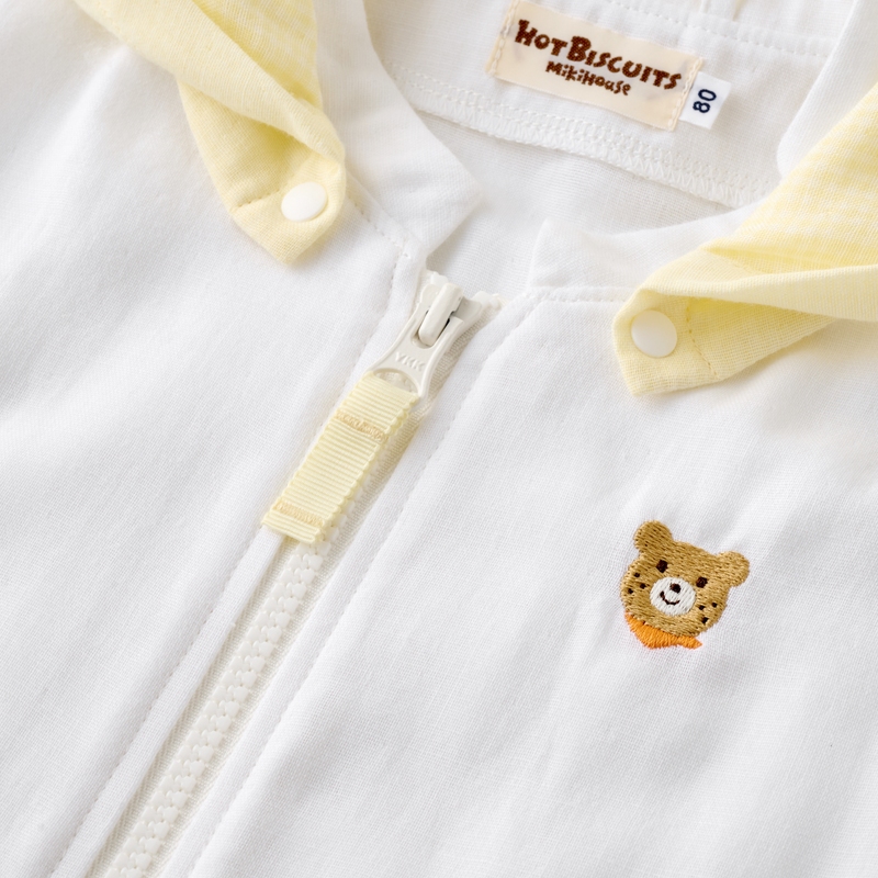 ミキハウス ホットビスケッツの二重織ガーゼ素材パーカー。