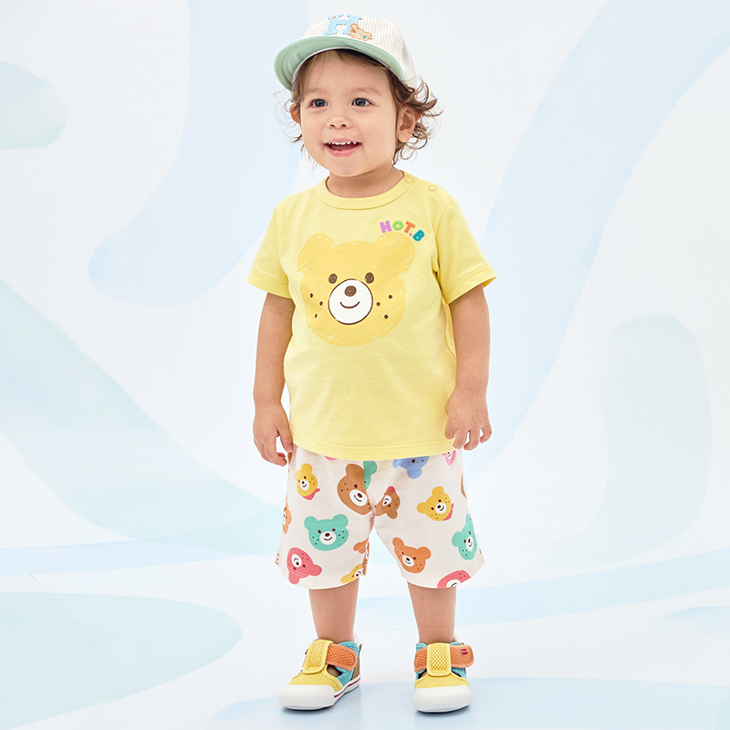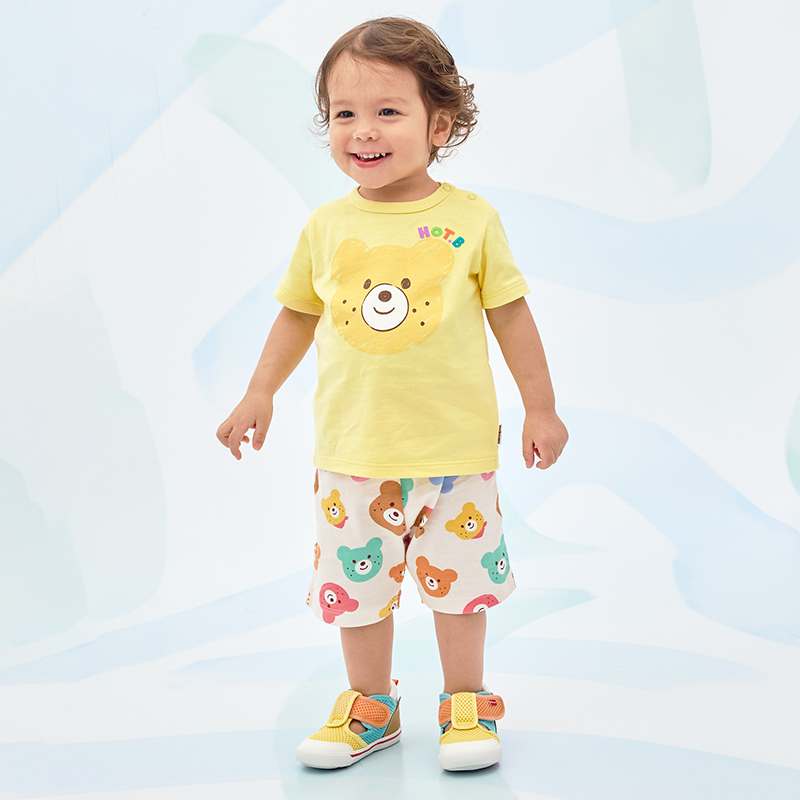 ミキハウス ホットビスケッツの総柄5分丈パンツ。 人気の総柄ビーンズシリーズにハーフパンツが登場! いろんな色のビーンズが総柄となったポップなデザインで、 ホットビスケッツらしいカラフルな配色が子どもらしく元気な印象に! [素材感] さらっとした肌触りで通気性がよく、汗をしっかりと吸収し 洗濯しても風合いが変わらず型くずれしにくい丈夫な天竺素材。 ……………………………………… 伸縮性:あり 生地:綿100% 透け感:なし 裏地:なし 裾丈:5分丈 ウエスト:総ゴム(ゴム替えホール付き) ポケット:あり(うしろ) おすすめ着用シーズン:夏 ……………………………………… [スタイリング] シンプルなTシャツはもちろん、 同じカラフルビーンズシリーズのTシャツ(72-5201-140)とのセットアップコーデもおすすめ◎ コーデに合わせたいTシャツはこちら >72-5201-140 カラフルビーンズ総柄半袖Tシャツ >72-5201-799 カラフルビーンズ フェイスプリント半袖Tシャツ 《HOT BISCUITS ーホットビスケッツー》 ミキハウスホットビスケッツは、”Good Quality”がキーワードのブランド。 子どもたちには毎日ごきげんに、楽しく健やかに 過ごしてほしいから、 お子さまのための良いものづくりを大切にしています。 男の子も女の子も子どもらしく、おしゃれに可愛く着られるアイテムがいっぱい。 赤ちゃんからキッズまでの子ども服・ベビー服・ベビー用品等を幅広くご用意しています。 春夏秋冬の季節に合わせた、ご出産祝いやプレゼント、ギフトもおすすめです。