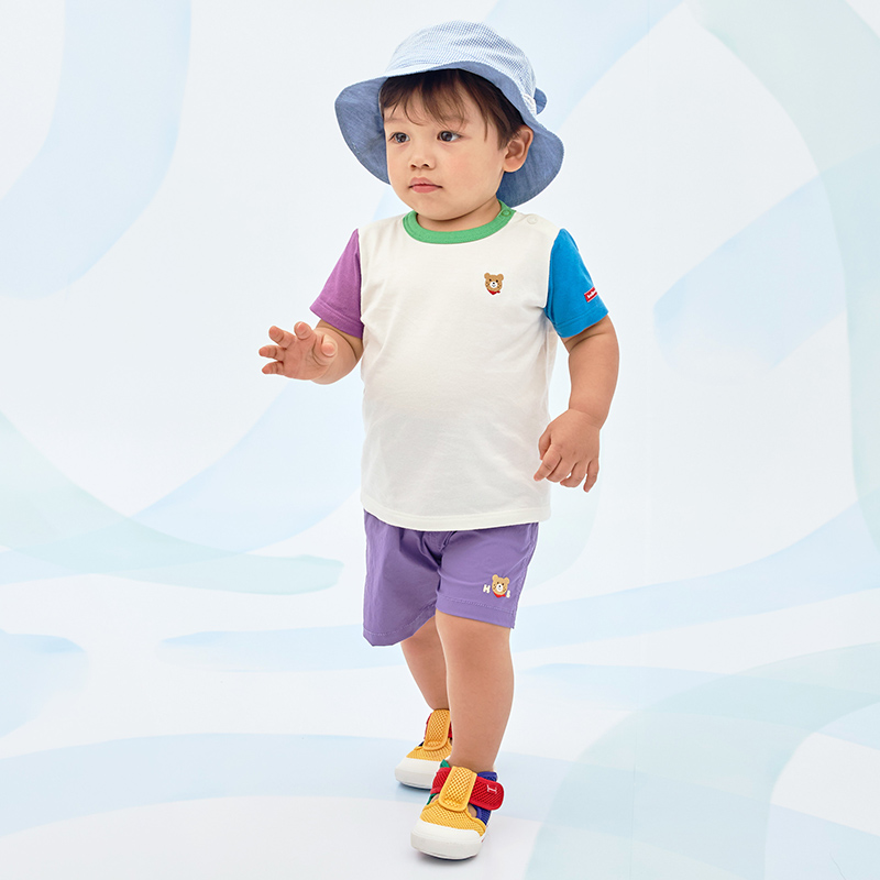 ミキハウス ホットビスケッツの撥水素材の5分丈パンツ。 ビーンズのワンポイントが入った5分丈のパンツです。 アウトドアライクなカラーがスポーティーな印象の夏らしい一枚。 撥水性のある素材なので、夏のおでかけやちょっとした水遊びにもぴったり! ユニセックスで着ていただけ、色によって雰囲気が変わるので複数買いもおすすめです。 [素材感] ドライタッチで軽やかな着心地と、撥水性も兼ね備えたストレッチナイロンタフタ素材。 しなやかな伸縮性が特徴の夏向けの薄手素材です。 ……………………………………… 伸縮性:あり 生地:撥水性があり、少し薄手 裏地:なし 裾丈:5分丈 ウエスト:総ゴム(ゴム替えホール付き) ポケット:あり(サイド・うしろ) おすすめ着用シーズン:春夏 ……………………………………… [スタイリング] 夏らしい鮮やかなカラーですが、シンプルなデザインなので色々なコーディネートに合わせやすい一枚です。 コーデに合わせたいTシャツはこちら >70-5213-149 みじんボーダーワンポイント刺繍半袖Tシャツ 《HOT BISCUITS ーホットビスケッツー》 ミキハウスホットビスケッツは、”Good Quality”がキーワードのブランド。 子どもたちには毎日ごきげんに、楽しく健やかに 過ごしてほしいから、 お子さまのための良いものづくりを大切にしています。 男の子も女の子も子どもらしく、おしゃれに可愛く着られるアイテムがいっぱい。 赤ちゃんからキッズまでの子ども服・ベビー服・ベビー用品等を幅広くご用意しています。 春夏秋冬の季節に合わせた、ご出産祝いやプレゼント、ギフトもおすすめです。