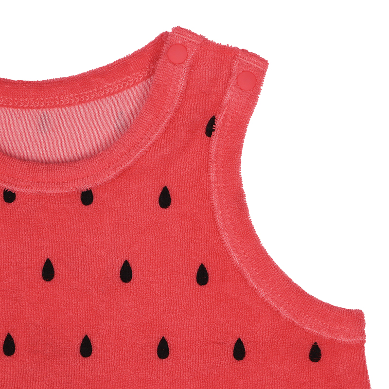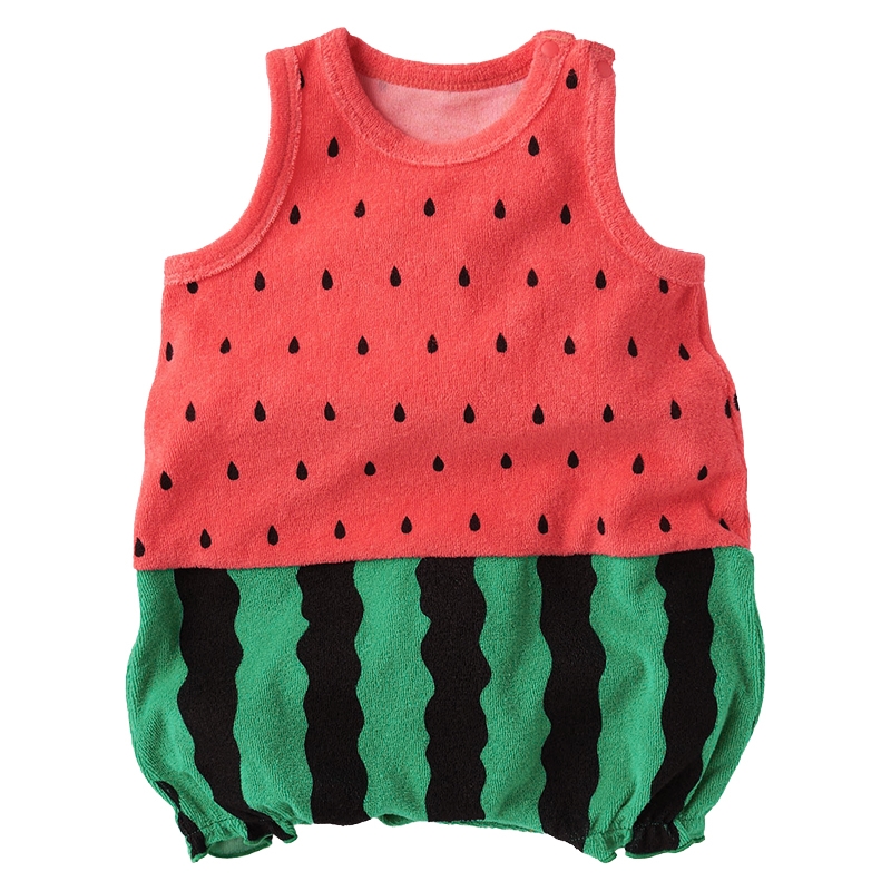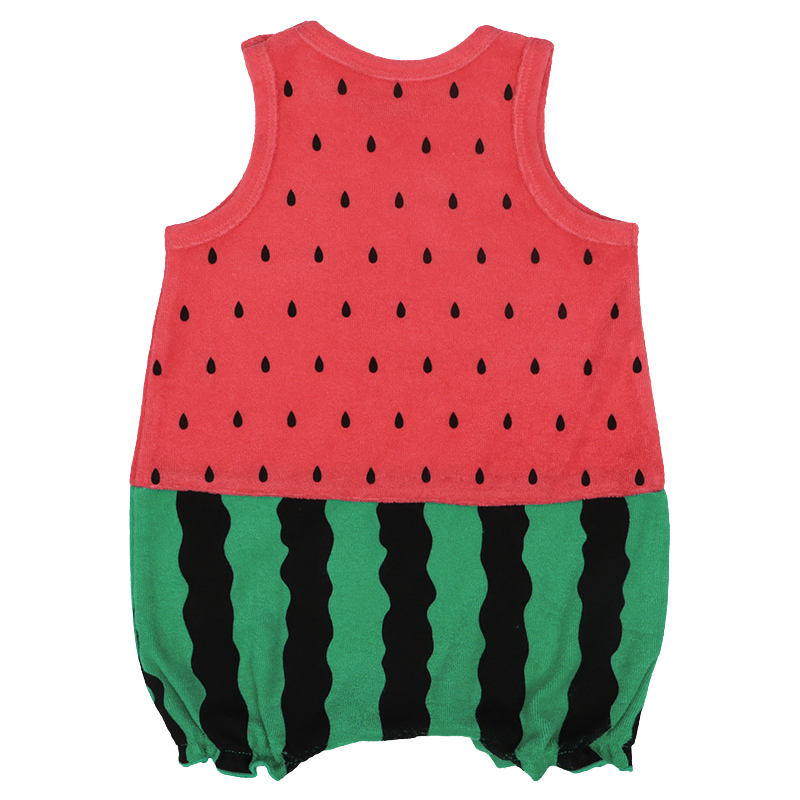 ●素材=スイカ・バナナ・アザラシ・ペンギン:綿76%ポリエステル24% カニ:上衣 綿100% 下衣・縁どり 綿76%ポリエステル24% ●サイズ(約・cm)= 60(身丈42.5・身幅26.8・足口上がり8.5) 70(身丈44.5・身幅27.8・足口上がり9) 80(身丈46.5・身幅28.8・足口上がり9.5)