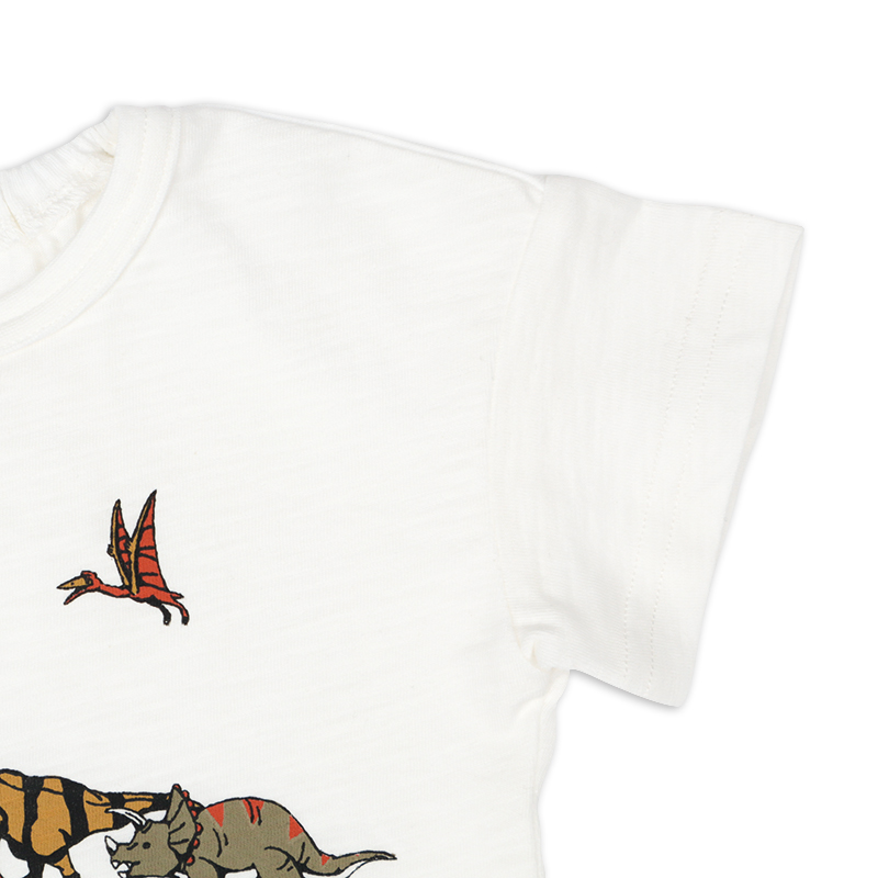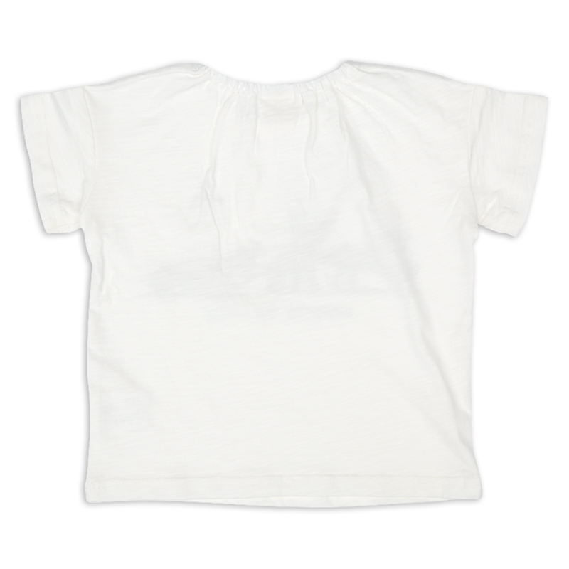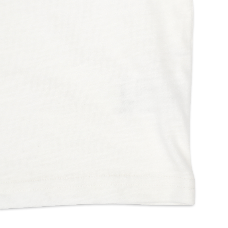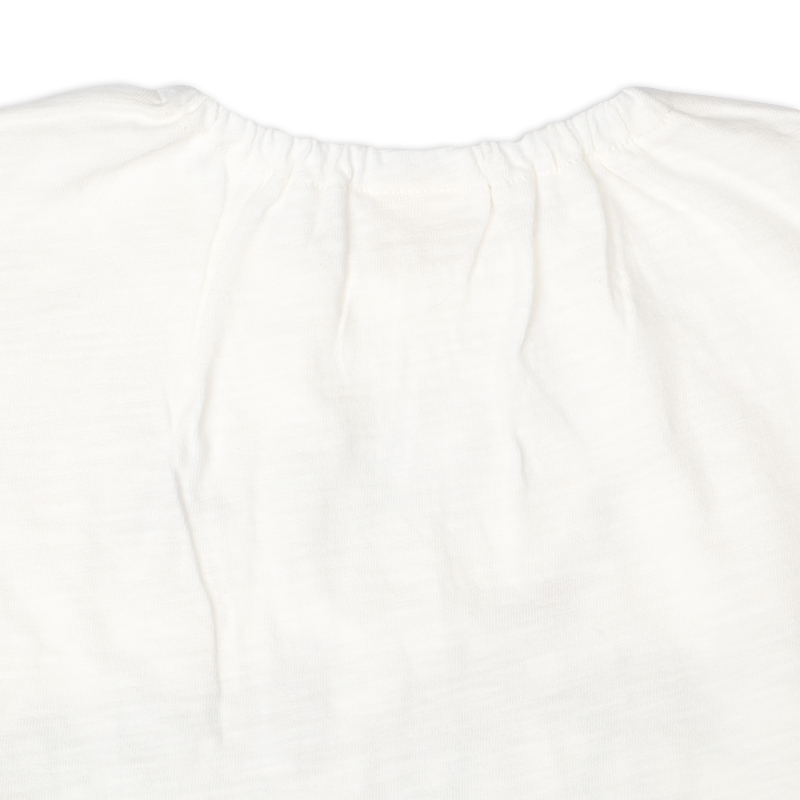 ●素材=本体 綿100%/衿刳り部 綿95% ポリウレタン5% ●サイズ(約・cm)= 70(着丈29 身巾32 袖丈5 裾巾31) 80(着丈32 身巾33 袖丈6 裾巾32) 90(着丈34 身巾34 袖丈7 裾巾33) 95(着丈36 身巾35 袖丈8 裾巾34)