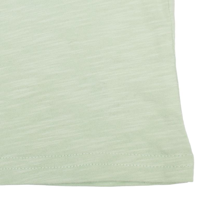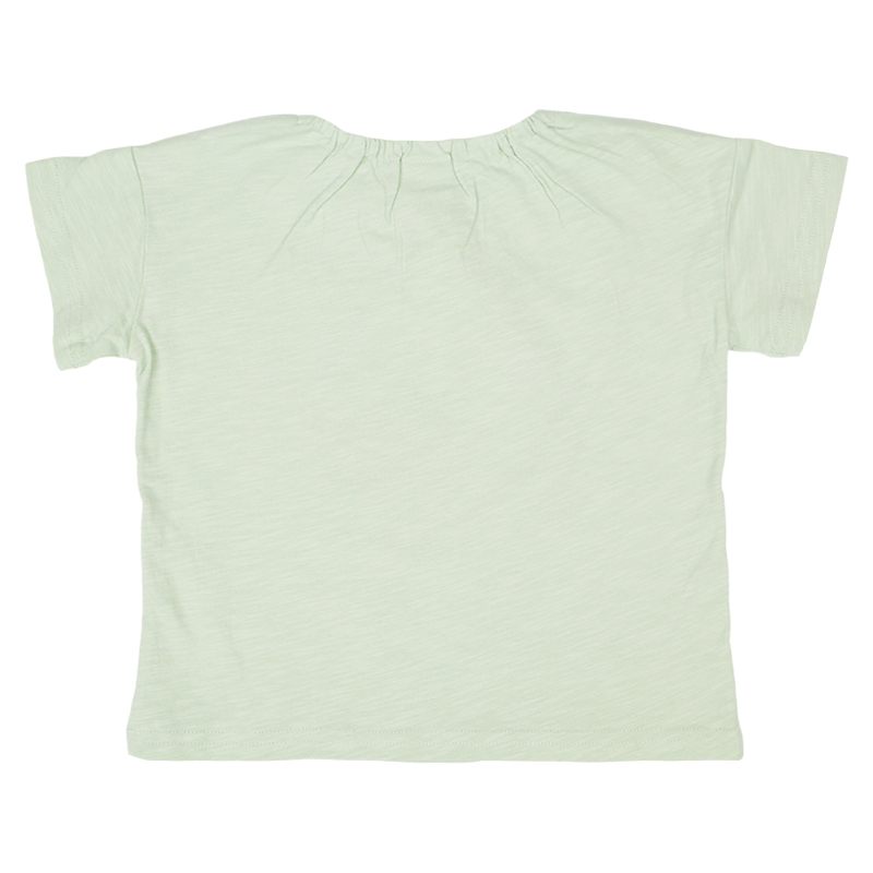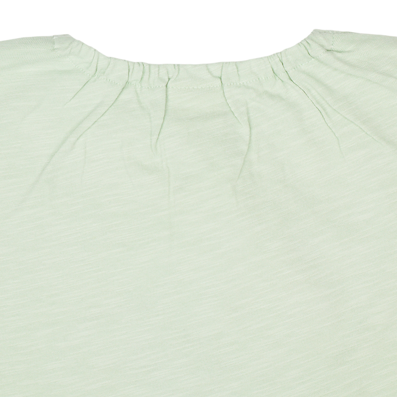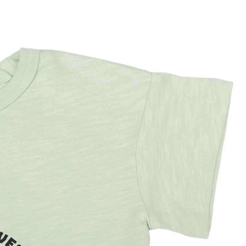 ●素材=本体 綿100%/衿刳り部 綿95% ポリウレタン5% ●サイズ(約・cm)= 70(着丈29 身巾32 袖丈5 裾巾31) 80(着丈32 身巾33 袖丈6 裾巾32) 90(着丈34 身巾34 袖丈7 裾巾33) 95(着丈36 身巾35 袖丈8 裾巾34)