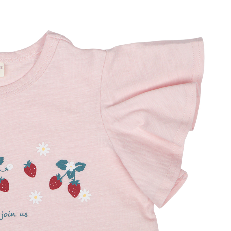 ●素材=本体 綿100%/衿刳り部 綿95% ポリウレタン5% ●サイズ(約・cm)= 100(着丈37 身巾32 袖丈10 裾巾40) 110(着丈40 身巾34 袖丈11 裾巾43) 120(着丈43 身巾36 袖丈12 裾巾45)