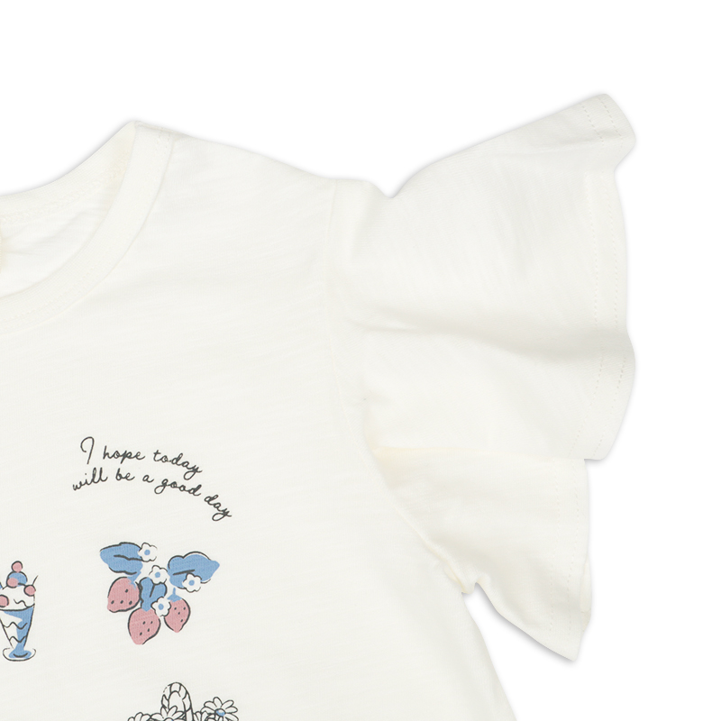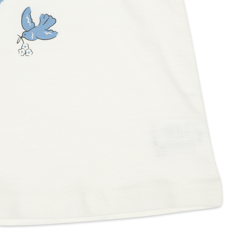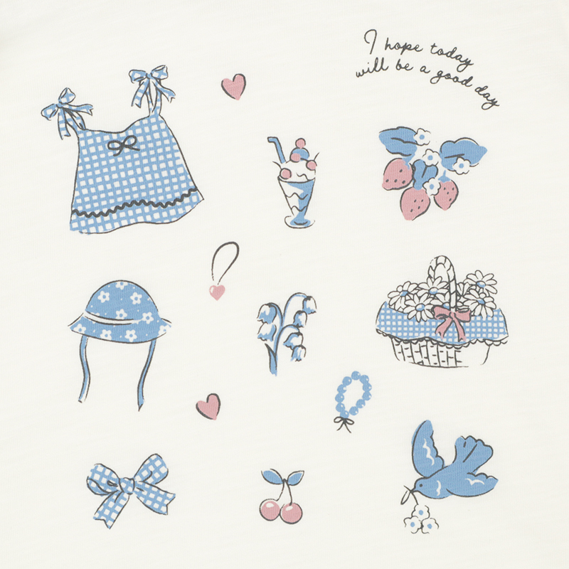 ●素材=本体 綿100%/衿刳り部 綿95% ポリウレタン5% ●サイズ(約・cm)= 100(着丈37 身巾32 袖丈10 裾巾40) 110(着丈40 身巾34 袖丈11 裾巾43) 120(着丈43 身巾36 袖丈12 裾巾45)