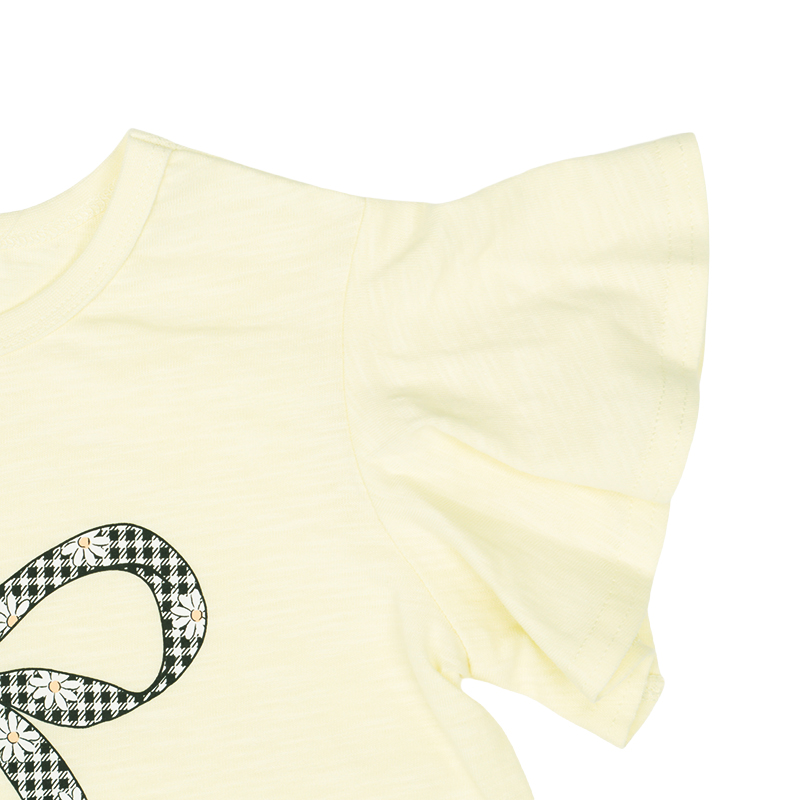 ●素材=本体 綿100%/衿刳り部 綿95% ポリウレタン5% ●サイズ(約・cm)= 100(着丈37 身巾32 袖丈10 裾巾40) 110(着丈40 身巾34 袖丈11 裾巾43) 120(着丈43 身巾36 袖丈12 裾巾45)