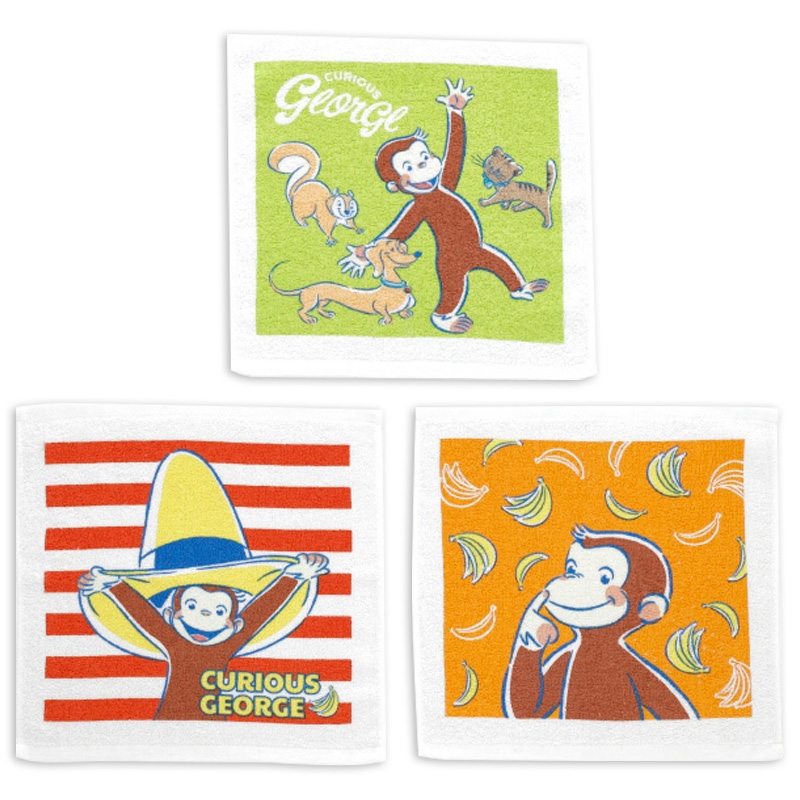 おさるのジョージがデザインされた可愛らしいハンドタオル3枚セットです。保育園や幼稚園、学校などへの持ち運びに便利です。柄違いの3柄がセットになっているので、その日の気分で違う柄を選んでご使用いただけます。