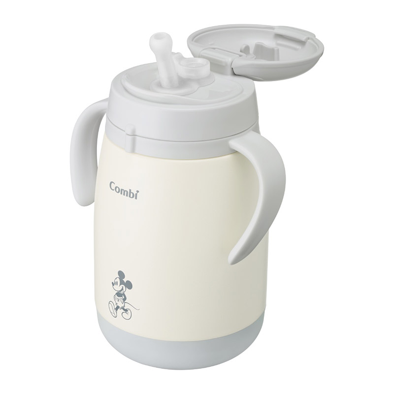 ●くわえやすくて飲みやすいストロー ボトル内のストローは、自然にナナメになるので、最後まで飲みやすい。 ●ふき出し防止弁 キャップを開くと同時に空気を逃がし、お出かけ中も漏れを防ぎます。 ●Wラクピタ構造 印に合わせてピタッと締めればOK。 キャップもピタッと閉じてダブルで漏れを防ぐ。 ●コンビ独自のパッキンレス構造 飲み口とパッキンがひとつに。 ●対象年齢:6ヵ月頃~ ラクマグシリーズ専用のオプションパーツが使用可能。 『はじめてストロー』(4ヵ月頃から)、『はじめてコップ』(5ヵ月頃から)のオプションパーツを使用することで、成長に合わせた飲み方のステップアップが可能。 ※オプションパーツは別売となります。 ※はじめてストローのスペアパーツは、ラージボトルにはご使用いただけません。 ●ボトル容量:370ml ●食洗機OK:全パーツ使用可能 ステンレスマグなのに食洗機OK。 ※業務用食洗機を除く ●消毒・除菌方法:飲み口とキャップアダプターは煮沸、電子レンジ、薬液での消毒・除菌に対応。 ●材質 キャップ:ポリプロピレン・熱可塑性エラストマー アダプター・ハンドル・ボトル飲み口ネジ部:ポリプロピレン 飲み口・インナーストロー・ボトル底カバー:シリコーンゴム ボトル(内びん):ステンレ ス鋼 ボトル(外側):ステンレ ス鋼(ポリエステル樹脂塗装)