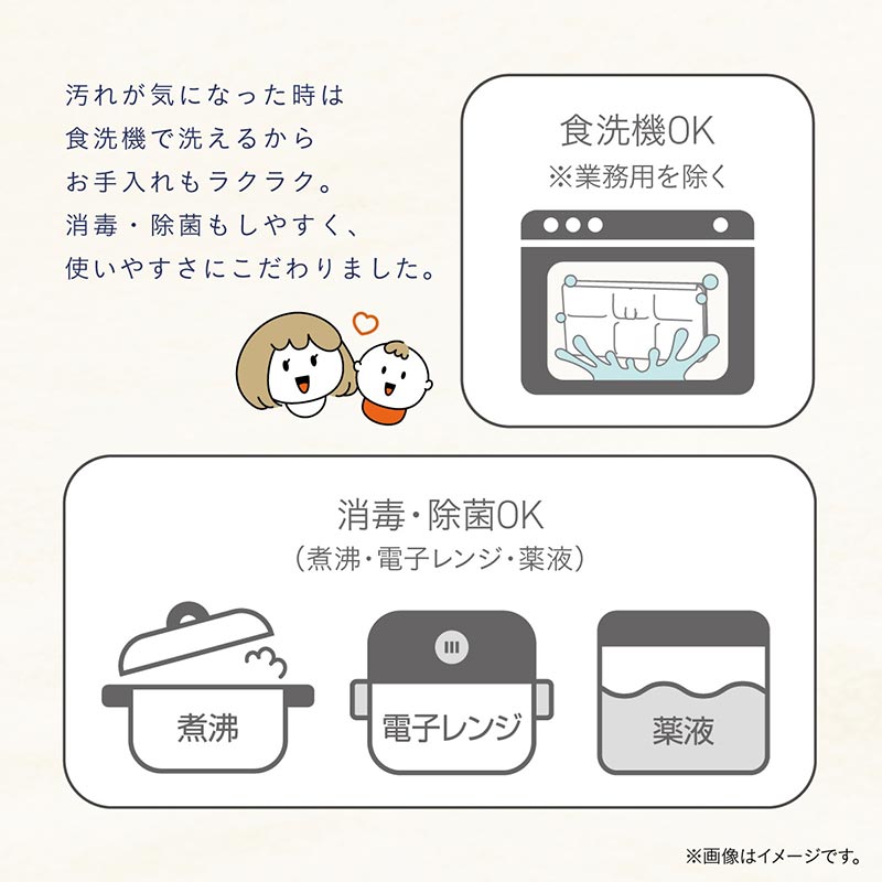 ●25ml×8ブロック(200ml) ※小分けの容量は目安です。冷凍のしかた等によっては、ばらつきが大きくなる場合があります。 ●対象月齢:5/ヵ月頃~ ●セット内容 ・本体 ・仕切り板 ・ゴムバンド×2本 ●フリーザーバッグの推奨サイズ 縦189mm(ジッパー部より下)×横177mm×厚み0.06mm ※フリーザーバッグは別売となります。 ※推奨サイズ以外では、均等に小分けできないことがあります。 ●食洗機OK ※ゴムバンドおよび業務用食洗機を除く ●消毒・除菌OK (煮沸・電子レンジ・薬液) ※ゴムバンドを除く ●主要素材 ラクわけ本体:ポリプロピレン 仕切り板:ポリプロピレン ゴムバンド:天然ゴム
