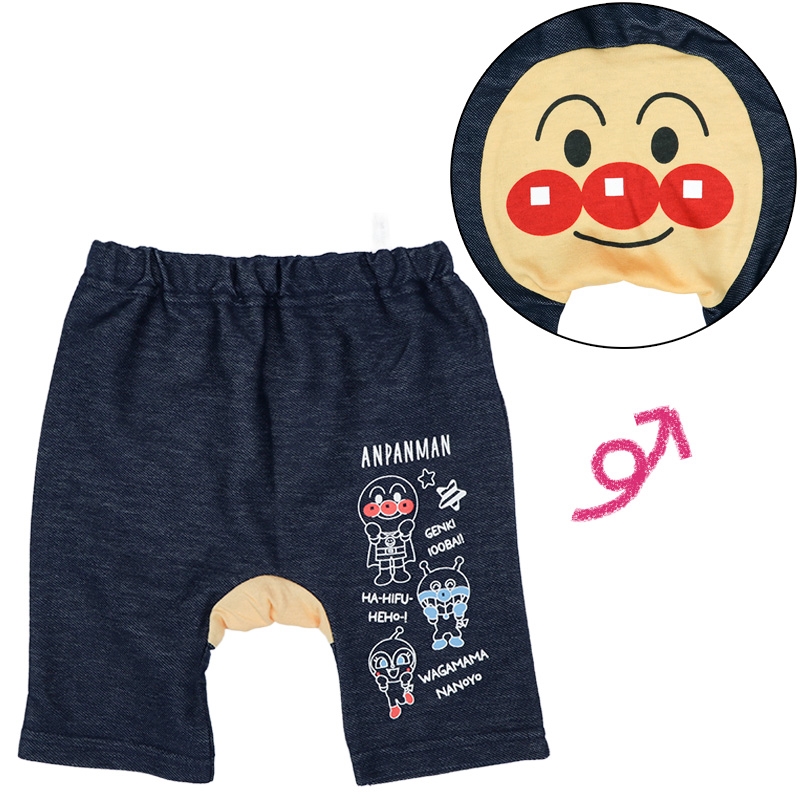 ●素材=本体 綿55% ポリエステル45% マチ部分 綿60% ポリエステル40% ●サイズ(約・cm)= [80]ウエスト巾19 パンツ丈28.5 股上17 足口巾11 [90]ウエスト巾20 パンツ丈29.5 股上18 足口巾12.5 [95]ウエスト巾21 パンツ丈31 股上19 足口巾13 [100]ウエスト巾21 パンツ丈32 股上20 足口巾13.5 ●原産国=中国製 ●洗濯表示=洗濯可 (C)やなせたかし/フレーベル館・TMS・NTV