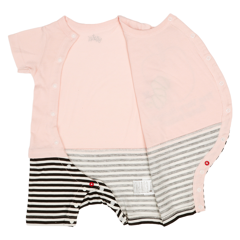 ●素材=ポリエステル65% 綿35% ●サイズ(約・cm)= [60]総丈41 股上34 股下7 身幅26 背肩幅19 袖丈8.5 ヒップ幅28 [70]総丈47 股上38 股下9 身幅27 背肩幅20 袖丈9 ヒップ幅29 [80]総丈52 股上41 股下11 身幅28 背肩幅21 袖丈9.5 ヒップ幅30 ●原産国=中国製 ●洗濯表示=洗濯可