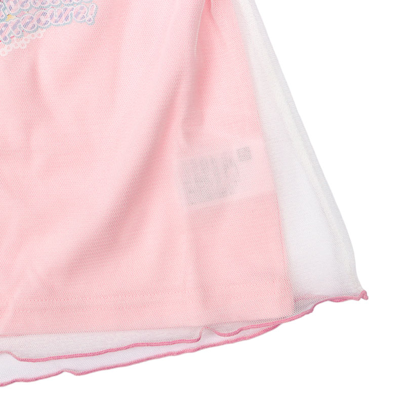 ●素材=本体 ポリエステル65% 綿35% チュール ポリエステル100% ●サイズ(約・cm)= [100]着丈(本体)38.5 身幅30 肩幅23 袖丈11 [110]着丈(本体)41.5 身幅32 肩幅25 袖丈12 [120]着丈(本体)44.5 身幅34 肩幅27 袖丈13 [130]着丈(本体)47.5 身幅36 肩幅29 袖丈14 ●原産国=中国製 ●洗濯表示=洗濯可