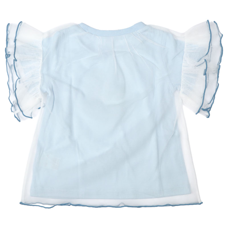 ●素材=本体 ポリエステル65% 綿35% チュール ポリエステル100% ●サイズ(約・cm)= [100]着丈(本体)38.5 身幅30 肩幅23 袖丈11 [110]着丈(本体)41.5 身幅32 肩幅25 袖丈12 [120]着丈(本体)44.5 身幅34 肩幅27 袖丈13 [130]着丈(本体)47.5 身幅36 肩幅29 袖丈14 ●原産国=中国製 ●洗濯表示=洗濯可
