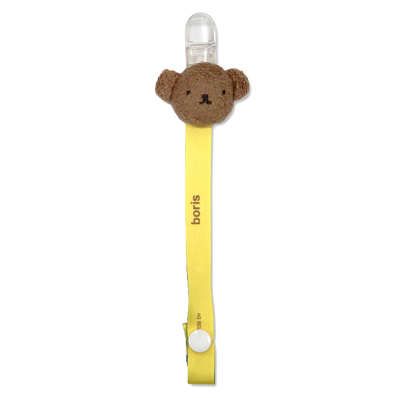 ボリスのマスコットがついたかわいいおしゃぶりホルダーです。 スナップボタン側におしゃぶりのリングを通してボタンを止め、もう片方のクリップに服やタオル、ハンカチをはさんで取り付けます。 おしゃぶりの紛失や落下防止に役立ち、おしゃぶりを衛生的に守ることができます。 (C)Mercis bv