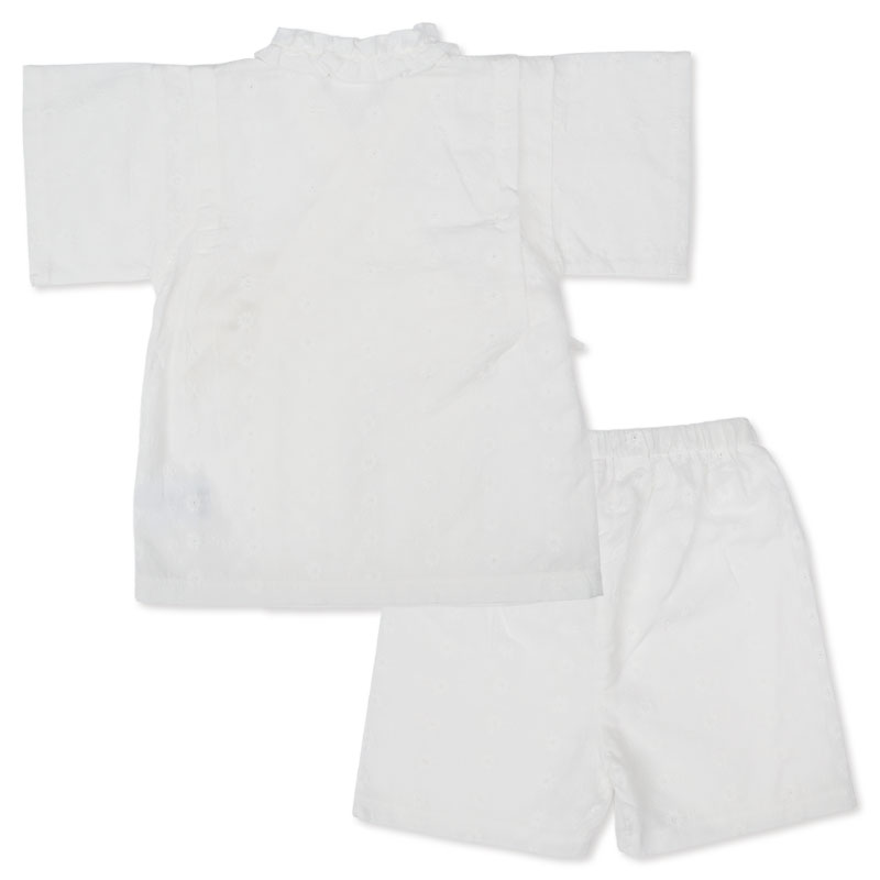 ●素材:綿100% ●サイズ(約・cm): [80cm](上着)着丈36・肩幅26・袖丈8.5・裾巾32 (ボトムス)ウエスト20・股上19・股下4・足口17 [90cm](上着)着丈38・肩幅27・袖丈9・裾巾33 (ボトムス)ウエスト20・股上20・股下6・足口17.5 [95cm](上着)着丈40・肩幅28・袖丈9.5・裾巾34 (ボトムス)ウエスト21・股上21・股下7.5・足口18