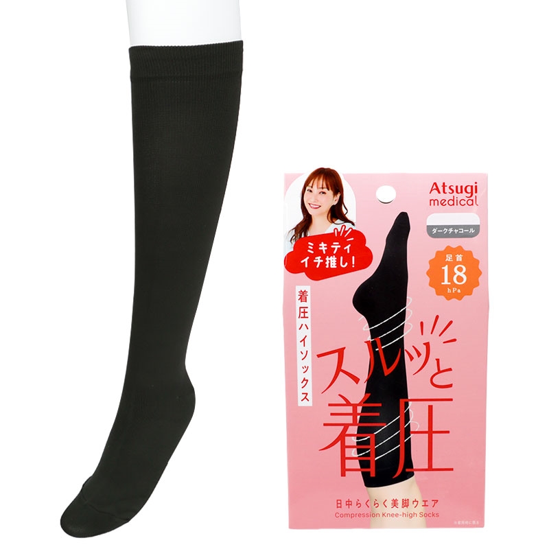 足首は18hPa、ふくらはぎは13hPaの着圧仕様で、脚をしっかりサポートします。 コンベンショナルヒールが足にぴったりフィットし、快適なはき心地です。 抗菌防臭加工が施されているので、気になるニオイ対策も。 ダークチャコールとブラックの2色展開で、どんなスタイルにも合わせやすいです。 はきやすい機能性ソックスで、毎日をもっと快適に!