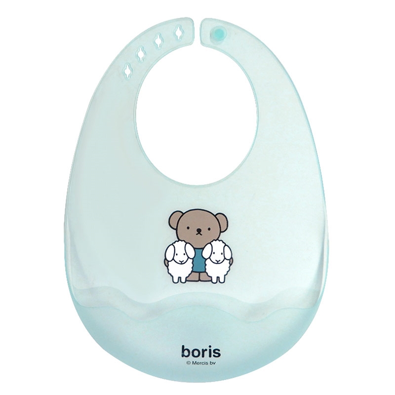 ボリスの軽量タイプのシリコンエプロンが登場。 ポケット部分で食べこぼしをしっかりキャッチ。 簡単に水洗い、拭き取り可能な扱いやすいシリコン素材のエプロンです。 ソフトな素材なので付け心地も良く、小さく丸めて持ち運びも出来ます。 首回りは4段階に調節可能。離乳食初期から使用できます。 (C)Mercis bv