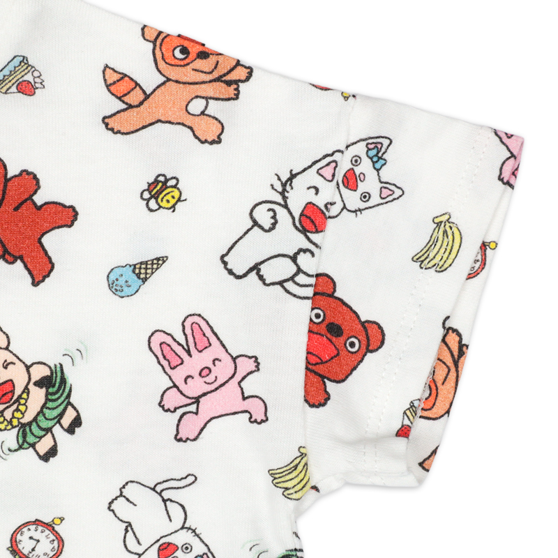 ●素材=綿100% ●サイズ(約・cm)= [80]着丈33 身幅32 肩幅34 袖丈5 [90]着丈36 身幅33 肩幅35 袖丈5.5 [100]着丈40 身幅35 肩幅37 袖丈6.5 ●洗濯表示=洗濯可 ●原産国=中国製