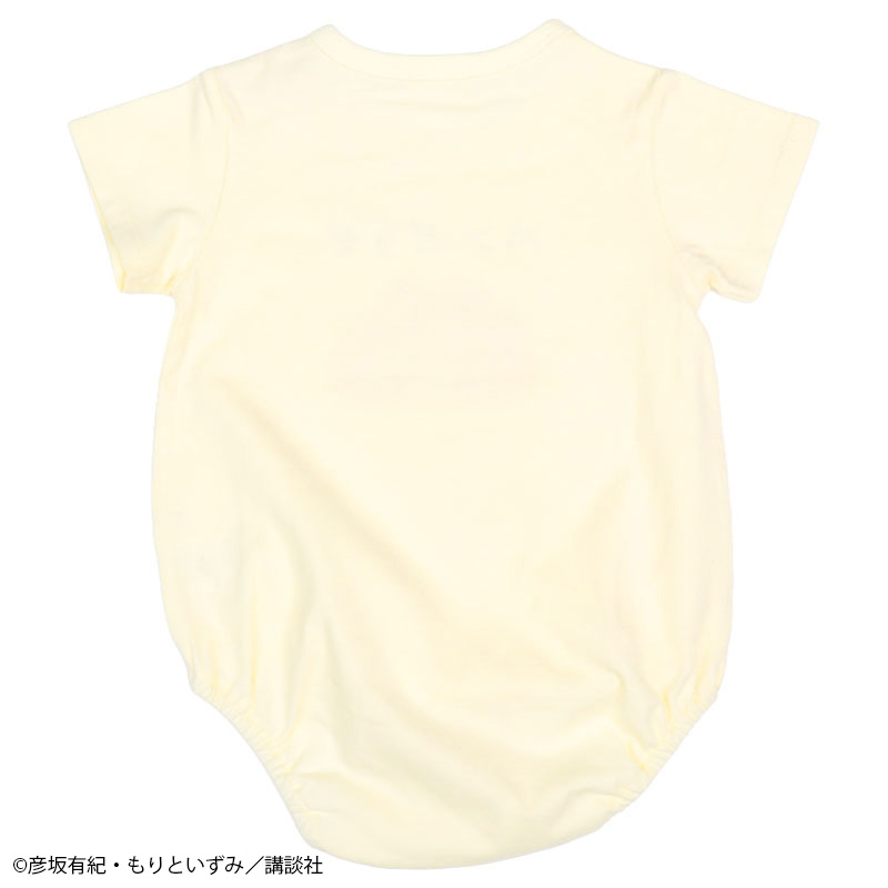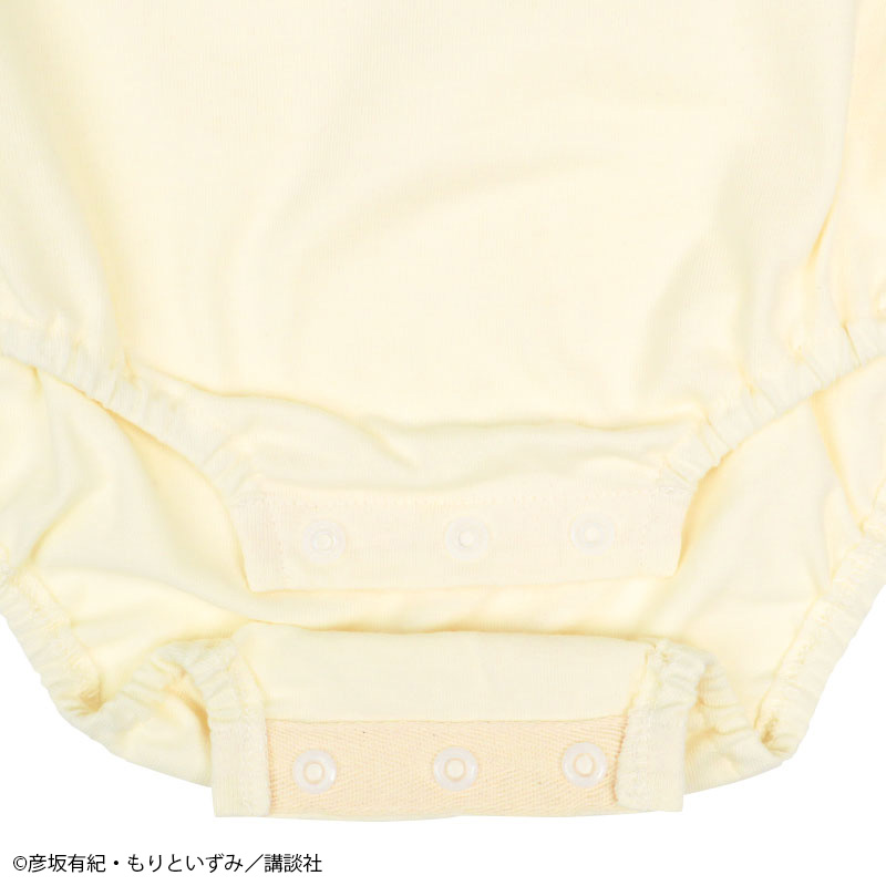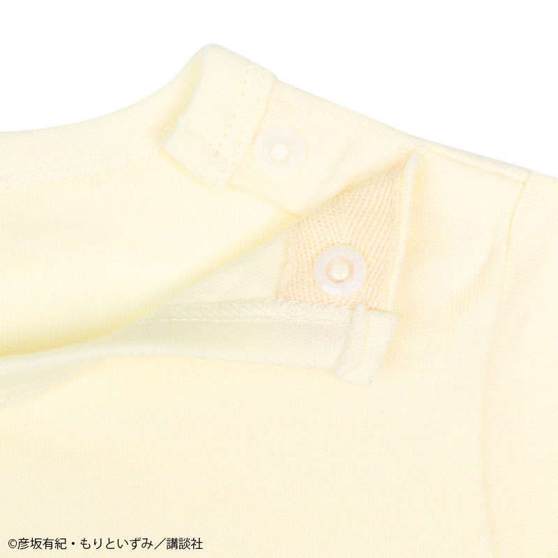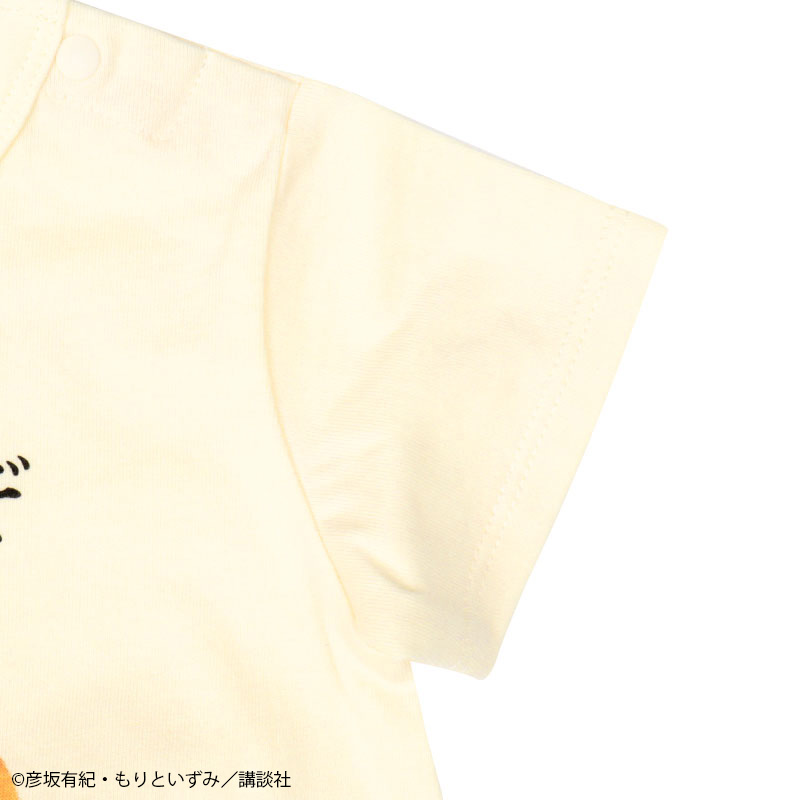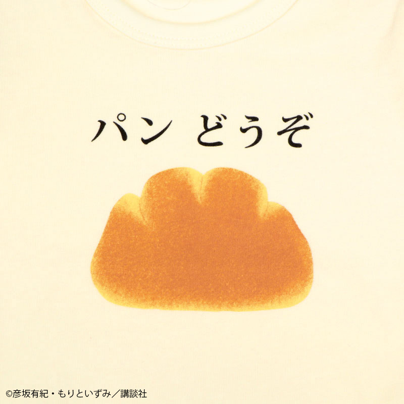 絵本「パンどうぞ」の半袖ロンパースです。 大きなクリームパンが目を惹くデザインです。 本体は肌触りのよい、良く伸びる天竺素材です。 肩部分はスナップボタンでお着替えも簡単。 股部分もスナップボタン付きでおむつ替えもスムーズにできます。