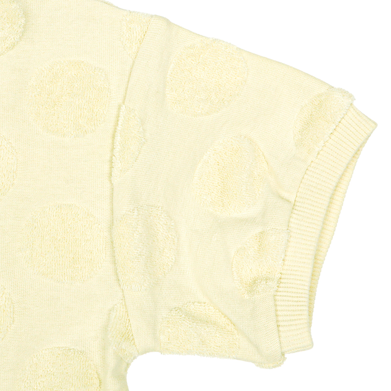●組成表示 本体 綿100% リブ 綿95%/ポリウレタン5% ●サイズ(約・cm) 80 ・・・ 総丈:33,身幅:35,肩幅:34,袖丈:9 90 ・・・ 総丈:36,身幅:36,肩幅:35,袖丈:10 95 ・・・ 総丈:37.5,身幅:37,肩幅:36,袖丈:10.5