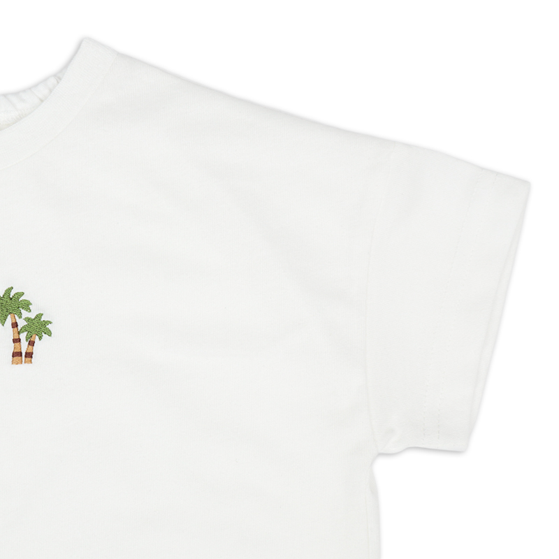 ・組成 本体 ポリエステル75% レーヨン25% リブ部分 ポリエステル57% レーヨン38% ポリウレタン5% ・スペック 70サイズ 総丈30cm肩幅33.5cm胸幅30.5cm袖丈5cm 80サイズ 総丈33cm肩幅35.5cm胸幅32.5cm袖丈5.5cm 90サイズ 総丈36cm肩幅38cm胸幅35cm袖丈6cm 95サイズ 総丈37.5cm肩幅39cm胸幅36cm袖丈6.5cm