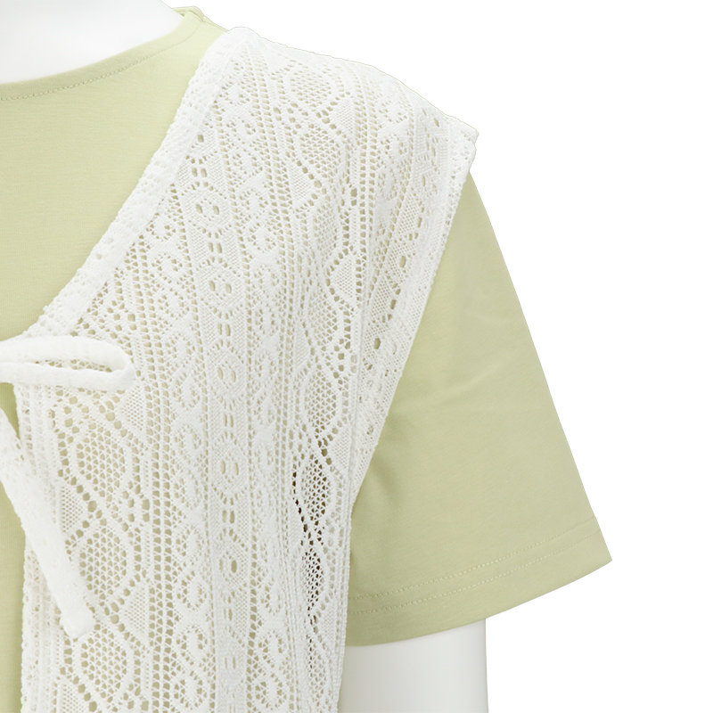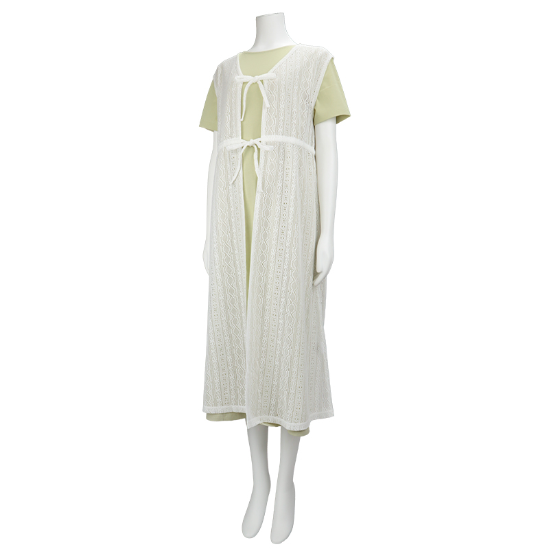 ●素材=ジレ:ポリエステル100% ワンピース:コットン65% ポリエステル35% ●サイズ(約 cm)=ジレ:M(バスト94.2 着丈111.2) L(バスト98.2 着丈111.2) ワンピース:M(バスト93.5 着丈118.0)L(バスト97.5 着丈118.0)