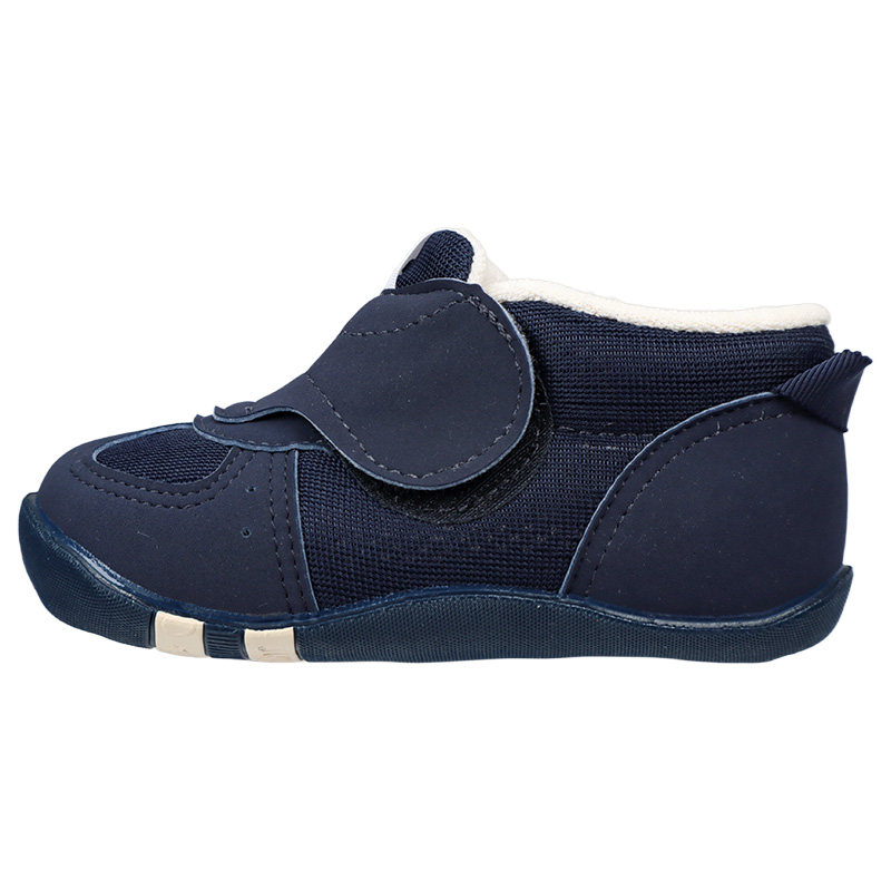 国産のファーストシューズです。 前開きフルオープンで履かせやすい設計になっています。 内側にはパイル素材を採用し、ムレにくく、赤ちゃんにもやさしい肌触りです。 ・つま先ゆったり:足の指を圧迫せずにのびのび動かせます。 ・カウンターボックス:子どもの柔らかくゆがみやすい足を箱型構造でしっかり支えます。 ・フレックスジョイント:足の曲がる位置で靴が曲がる設計で、足に余計な負担をかけません。 ・カテキンインソール:緑茶を原料とした「カテキン」を使用することで、優れた「抗菌」「防臭」効果を発揮します。 ・洗えるインソール:カップインソールで取り外して洗濯頂けます。