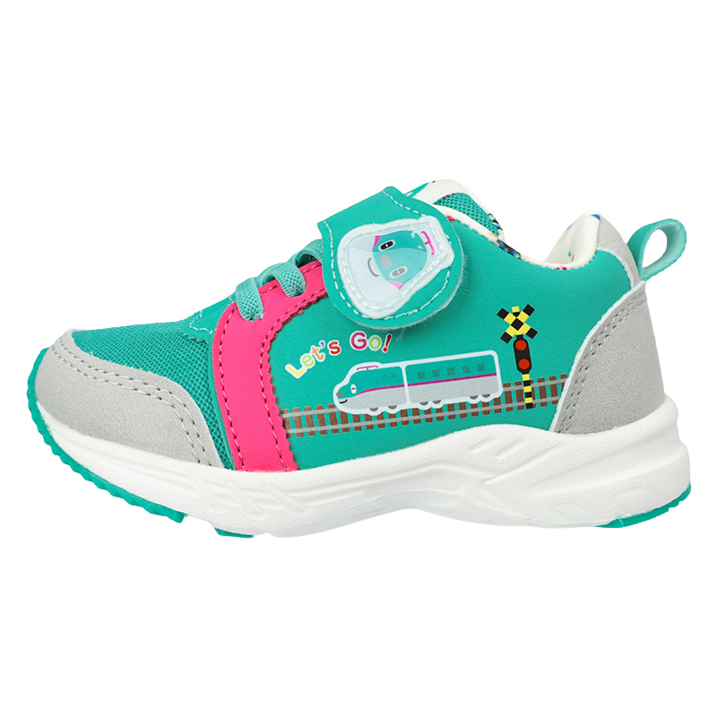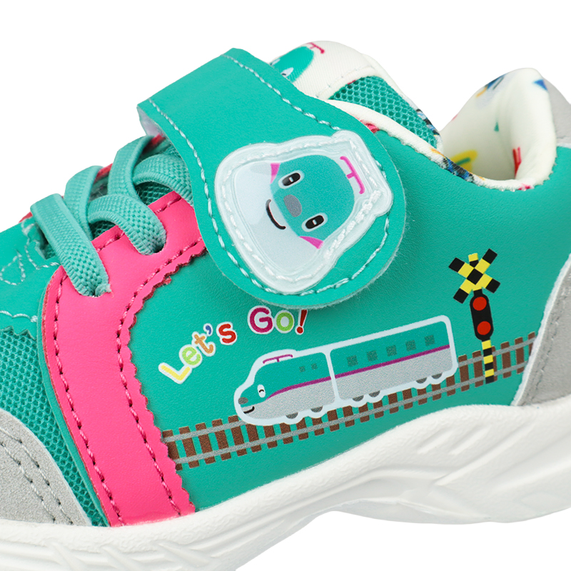 とれたんず×はやぶさくんのオリジナルスニーカー。 新幹線はやぶさのイメージをそのままデザインしております。 インナーにも総柄された新幹線プリントが散りばめられており、列車好きなお子様にピッタリなシューズです。
