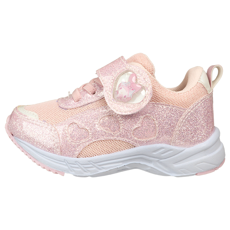 ラメ感タップリにされたキラキラシューズ。 マイメロディがさり気なくデザインされており、履きやすい仕様です。