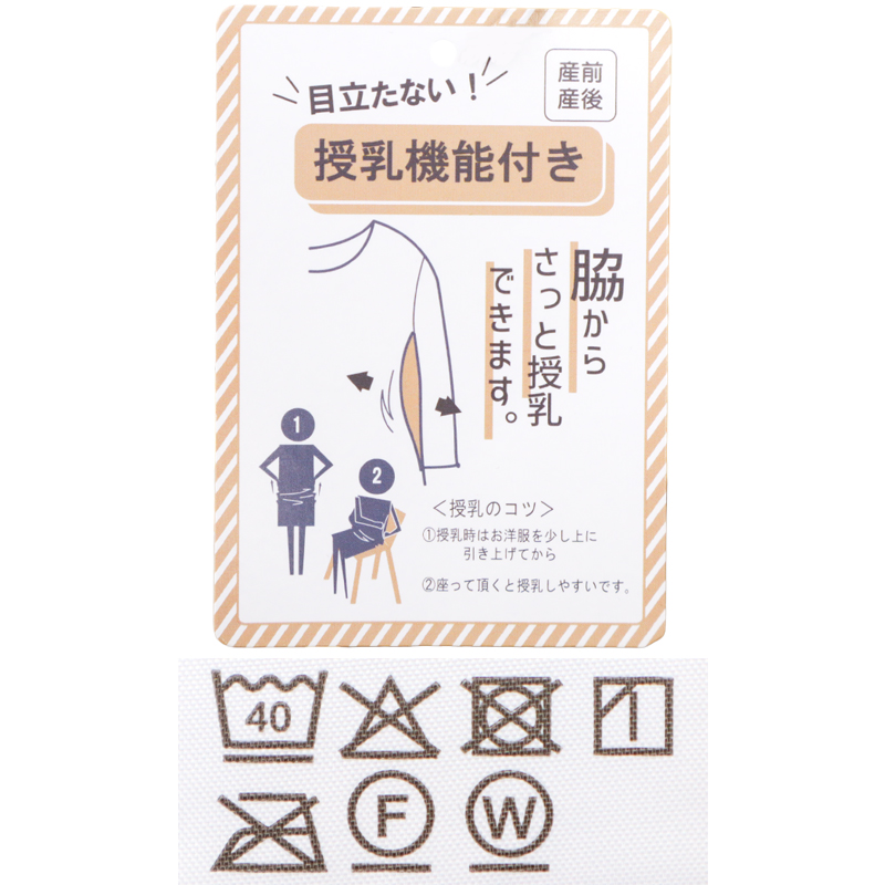●素材=ポリエステル98% ポリウレタン2% ●洗濯表示=液温は40℃を限度とし洗濯機で弱い洗濯処理ができる。漂白処理はできない。タンブル乾燥はできない。日陰でのつり干し乾燥がよい。アイロン仕上げ処理はできない。石油系溶剤又はデカメチルペンタシクロシロキサンによるドライクリーニングができる。弱い処理でのウエットクリーニングができる。●サイズスペック= M 身幅50.3 着丈109 肩幅33.5 袖丈29 L 身幅52.3 着丈112 肩幅34.5 袖丈30 ●対象期間=産前~産後
