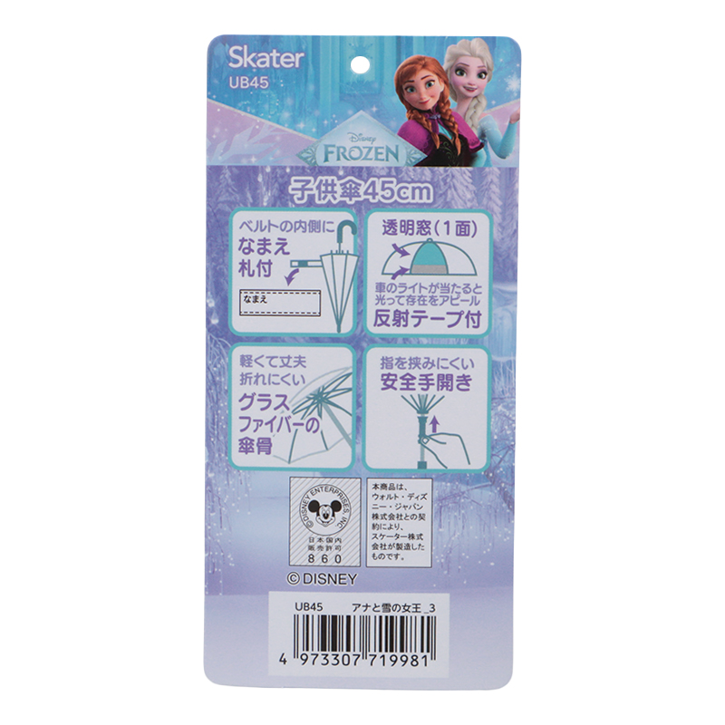 ●対応身長(約) 105~125cm ●商品サイズ(約) 傘骨の長さ:45cm 開いた時の直径:79cm 全長:65cm 重さ:240g ●品質表示 傘生地の組成:ポリエステル100% 透明部分:ポリエチレン 骨:グラスファイバー