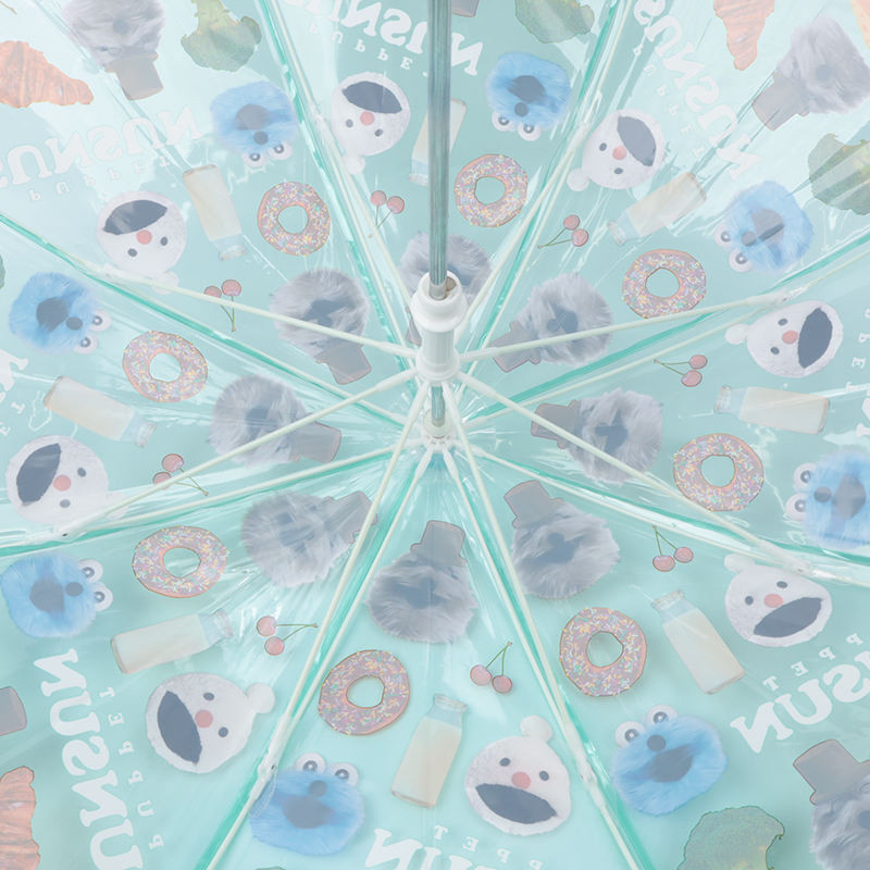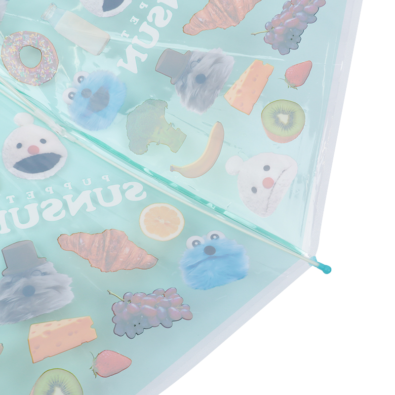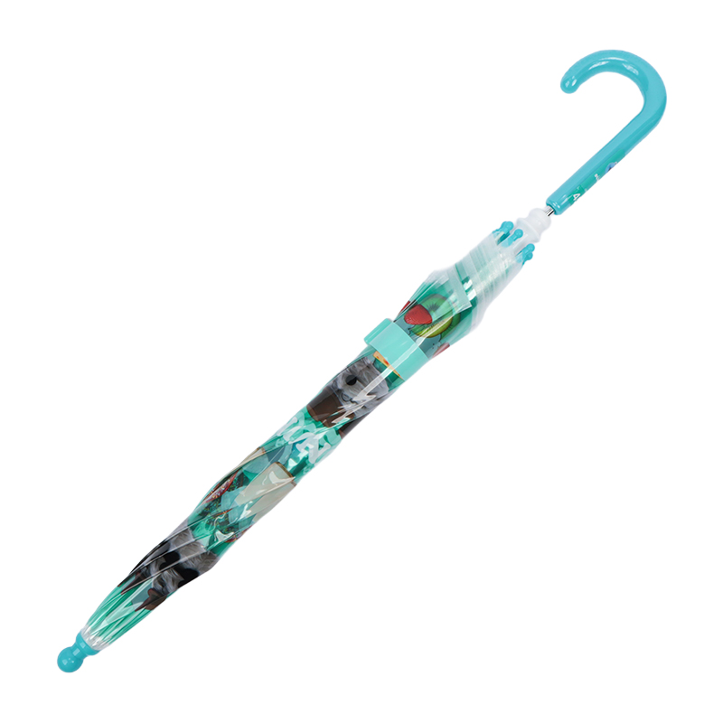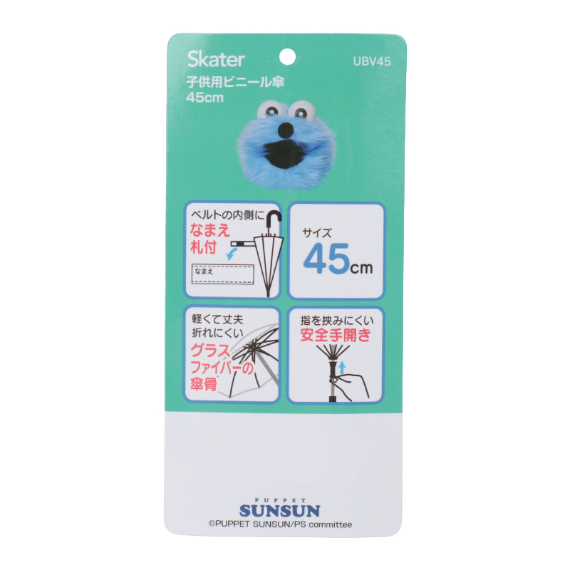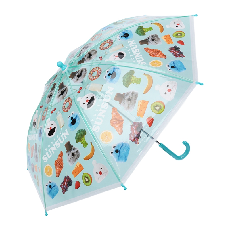 かわいいデザインの子供用ビニール長傘。傘骨は軽くて丈夫で折れにくいグラスファイバー。開閉部は指を挟みにくい安全手開き式で安心。ベルトの内側に名前が書けるタグ付き。ポリエチレン素材を使用している為、印刷が剥離する場合があります。印刷部分をこすったり、直射日光を当てないようにご注意ください。