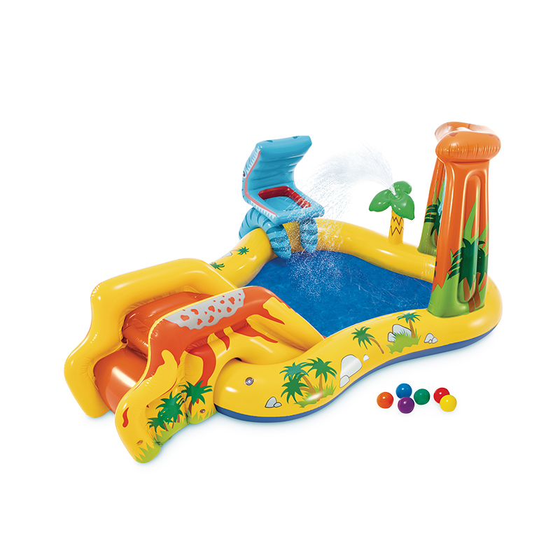 楽しい仕掛け満載!大きめサイズの恐竜プール! ボール遊び出来る恐竜や滑り台など、お子さまが喜ぶ様々なギミックがついた、大きくて遊び心満載のプール。